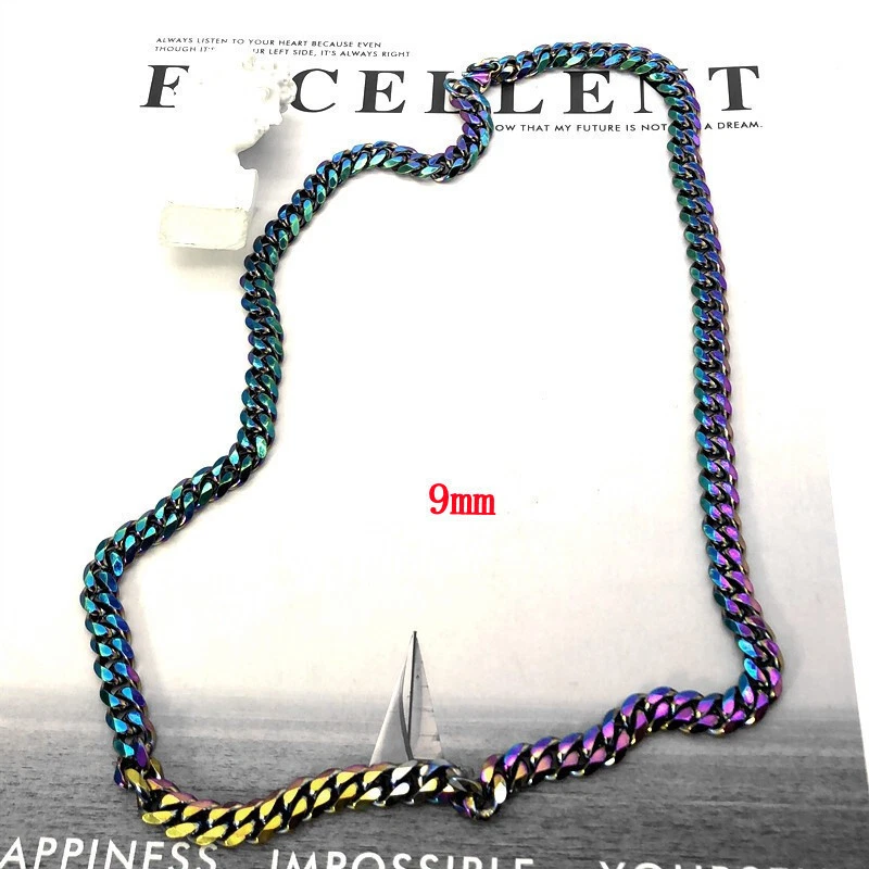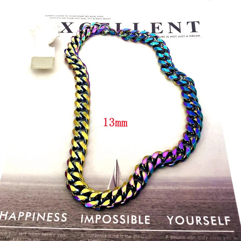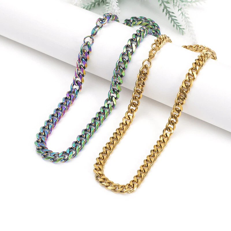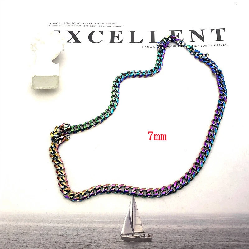 Colorful Stainless Steel Cuban Link Chain Necklace Men Women Jewelry Accessories