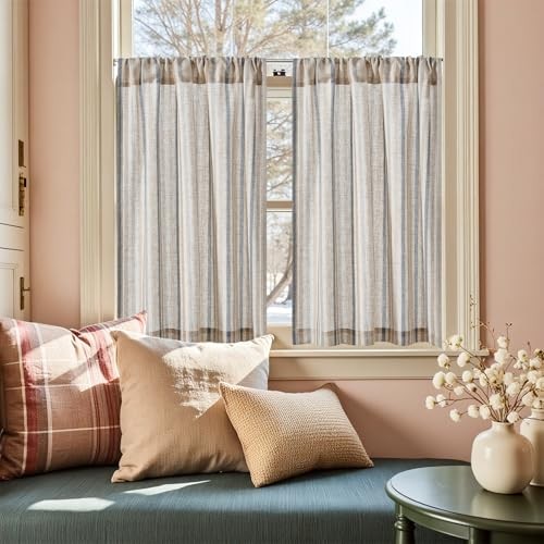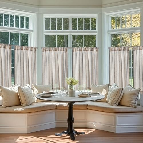 $ 7.4840 Inch Length Short Linen Curtains for Window 2 Panels, White Small Drapes