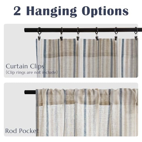 Return Policy Fast Delivery Trusted seller Colorful Striped Linen Kitchen Curtains Pinstripe Tier Rustic Cafe Curtains for Living Room Bathroom Half Window Light Filtering Rod Pocket 2 Panels 24 Inch Muti Blue Product Description Ready Made: Each package contains 2 tier curtain panels. Each panel measures 26 inches wide and 24 inches long and has a 3-inch pole pocket, which works well with tension rods or normal rods, easy to install and slide Colorful Striped Design: Crafted from a durable linen blend, the vibrant vertical stripes bring a natural, textured charm to rustic and bohemian decor styles, creating a cozy, lively space Light Meets Privacy: Softly diffuses natural light to brighten your room while providing enough privacy. You can enjoy the cozy time by enjoying the soft light inside Versatile Use: These tier curtains paired well with styles like farmhouse, rustic, cottagecore, and modern. Suitable for kitchen, glass door, living room, bedroom, bathroom, laundry room, bay window, RV and so on. Enhance different decor themes Easy Care: Machine washable in cold water in gentle circle and tumble dry in low setting. Creases on the short curtains from packing and shipping can be pressed by ironing or steaming. Wash with similar colors with no bleach Shipping Returns Payment Shipping Shipping is FREE to all addresses other than APO/PO boxes in the lower 48 states. All our stock ships from US-based warehouses. Shipped via USPS or UPS (depending on location and package weight) Unless stated otherwise, all orders will ship within 24-72 hours of your payment being processed. Check our feedback to see the great reviews of FAST shipping we offer. Returns Seller does not accept returns Payment We currently accept payment via eBay managed payments only. Once payment is cleared, we will dispatch your shipment within 1-3 business days. Please refer to the "Shipping" tab for more information regarding shipping speed to your destination.