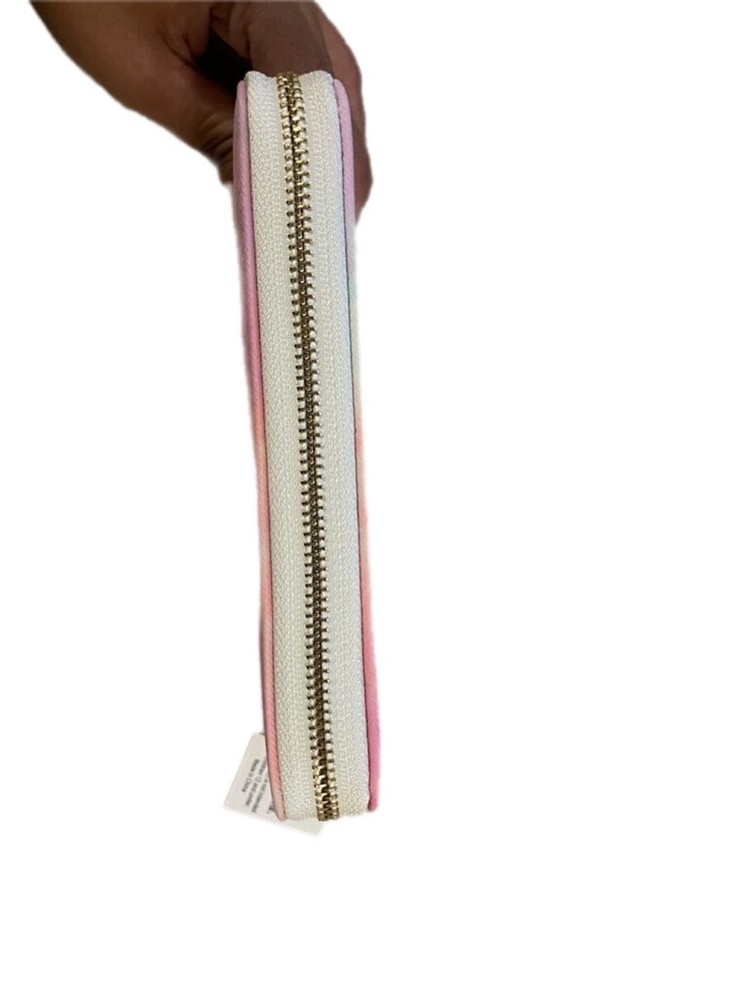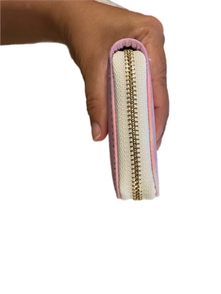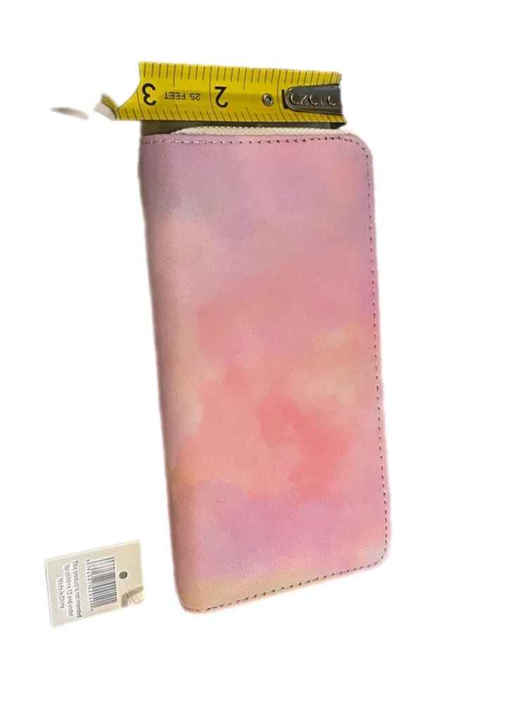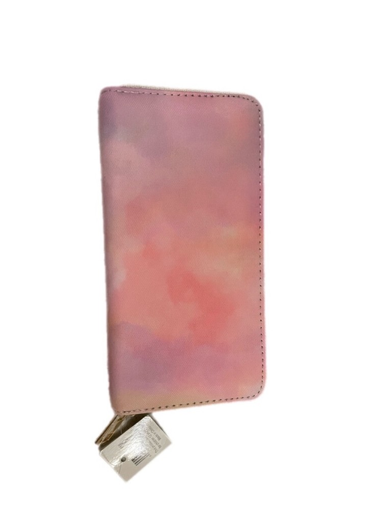 Pink watercolor wallet with plenty of card slots and zipper pocket.