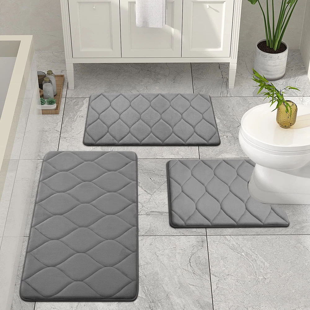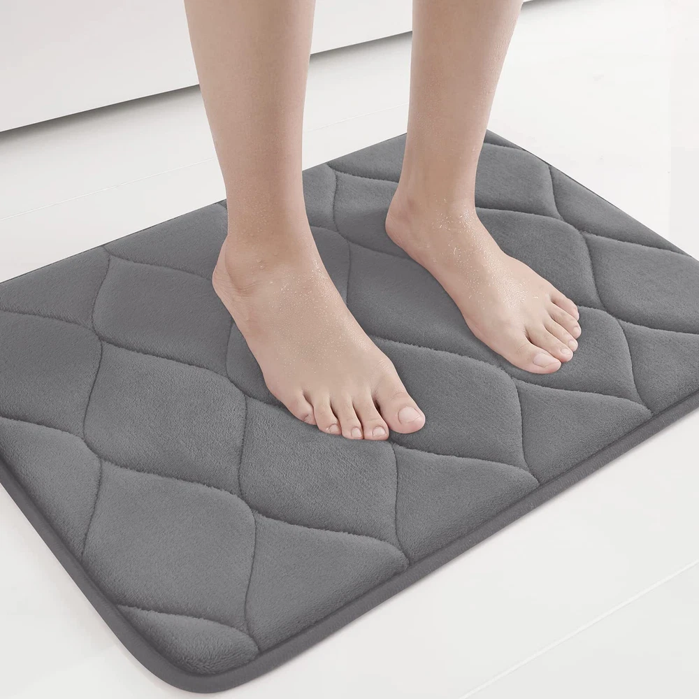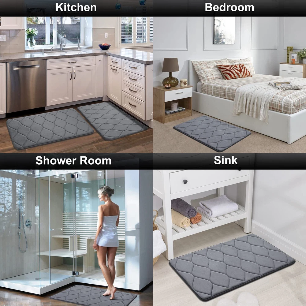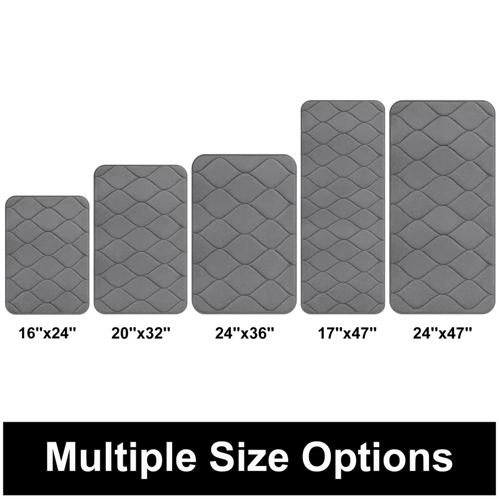 COMFORTABLE AND LUXURIOUS - Colorxy memory foam bathroom rugs are made with soft and comfortable polyurethane memory foam and the outer material is super soft and cozy flannel velvet feel microfiber, let you feel like walking on the clouds and do not want to step right out of the bath rugs. NON-SLIP BACKING - The bath mat is backed with non-slip PVC mesh to prevent shifting and skidding, protecting you and your family from any slipping in the bathroom. WARNING: Place the mat on the CLEAN DRY FLAT FLOOR ONLY. Water under the rug can cause it to slip. Always keep the bottom of the rug dry. SOFT MEMORY FOAM AND ABSORPTION - Colorxy bath runner rug is a thick, cushiony memory foam bath mat to shape your feet, giving you unique added support to help eliminate pressure on your feet. And these bath mats are made with special technology for quick absorbent and fast drying (Putting the bathroom floor mats in a ventilated place or under the sun will dry faster). MACHINE WASHABLE - Save time and easy to clean, Colorxy bathroom rug can machine wash separately in cold water using mild detergent. Use only non-chlorine bleach when needed. Also you can simply pick up and shake the rug to freshen, which will keep your rug the same for a very long time. MULTIPURPOSE USE - Elegant bathroom mats smart useful purposes for bathroom, tub-side, front of the sink, kitchen, living room, meeting room, study room, corridor, bedroom, balcony, sliding room, laundry room, indoor & outdoor etc, or at any place in your home where you want to support and warmth on your toes. The variety of colors and exquisite ogee design is a good choice for bathroom décor.