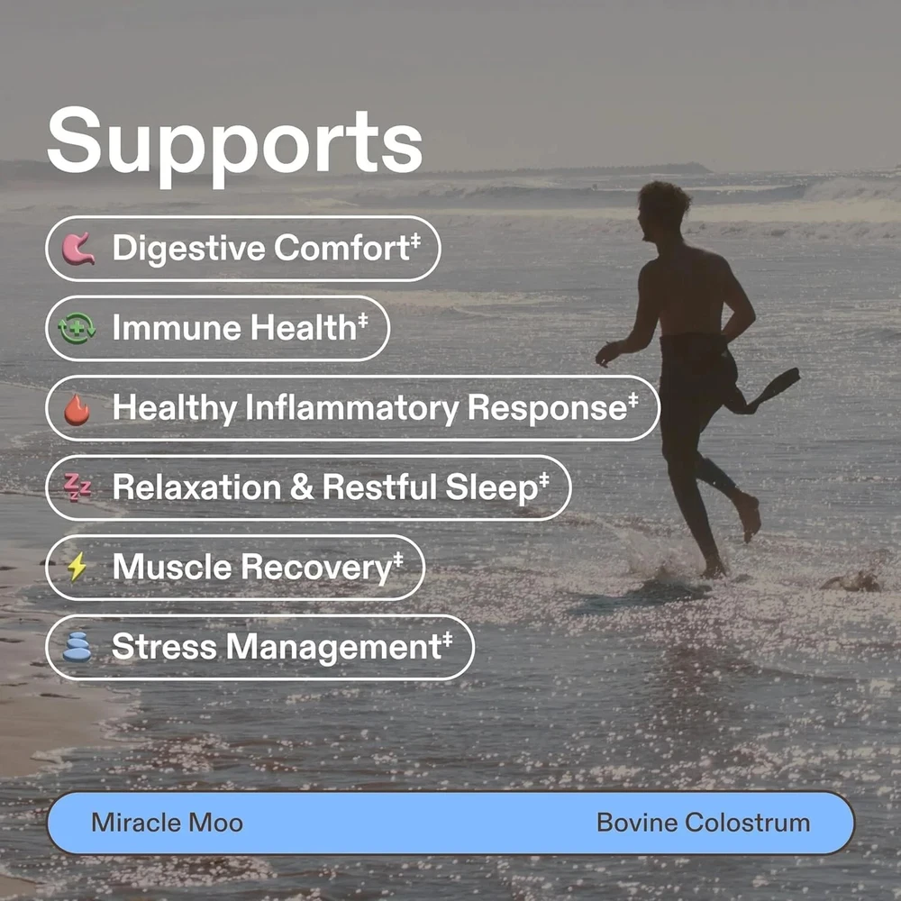 Colostrum Supplement for Gut Health, Hair Growth, Beauty and Immune Support - Easy to Mix Grass Fed Bovine Powder - Highest IgG Plus ImmunoLin (30 Servings (Capsules)). Experience the wellness of Miracle Moo Colostrum Powder, a natural powder that will boost your wellness journey, revive your immune health, and support your gut health. Elevate your health with this nutrient-rich supplement that supports tissue repair, digestion, and overall vitality.