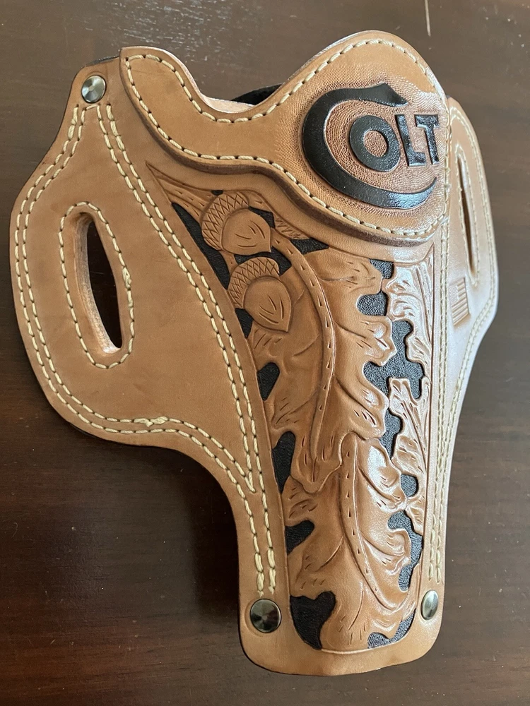 Carry Position: 2 o'Clock Material: Leather Attachment Type: Paddle Brand: Unbranded Carry Location: Belt (OWB), Hip For Gun Type: Revolver Color: Beige For Gun Make: Colt Cant: Forward Level: Level 1 Type: Concealment Holster Handedness: Right Features: Lightweight Sport/Activity: Shooting Country/Region of Manufacture: United States