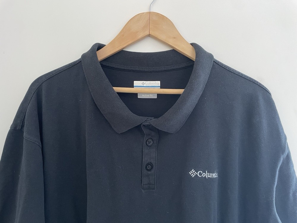 Columbia Active Fit Men's Classic Solid Black Cotton Short Sleeve Polo Shirt XXL. Condition is pre-owned. Smoke free, pet free home. Shipped via USPS Ground Advantage. Measures approximately 29 inches across the chest and 26 inches from top to bottom. In very good condition. Free of rips or stains.