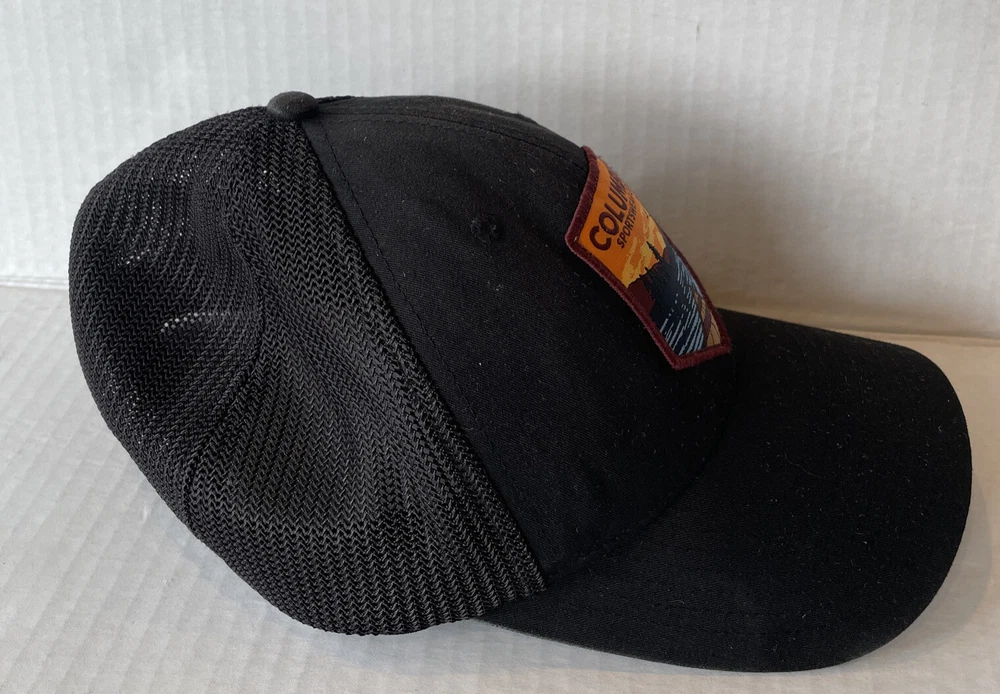 Crafted for the adventurer, this Columbia Sportswear Mesh Flex Fit Outdoors Lake Patch Hat is the perfect accessory for any casual occasion. The solid black canvas, made from a blend of polyester and cotton, offers both comfort and durability. Its adjustable Flex Fit design ensures a snug and personalized fit for a wide range of outdoor activities. The hat features a distinctive mountain patch, embodying the spirit of hiking and exploration. Whether you're facing the sun's rays in summer or enjoying a crisp fall day, this baseball cap is designed to keep you cool and stylish all year round. With its timeless design and versatile appeal, it's a must-have for any casual wardrobe. Great Condition Clean, No Stains No wear or tear See pictures of measurements