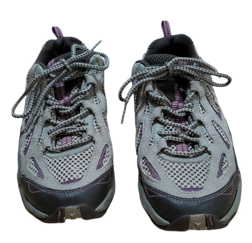 Columbia D Storm Hiking Trail Shoes Womens 7.5 Gray Purple Sneaker BL3564-221. Very Good Pre Owned Condition. One worn spot of on inner heel (see pictures).