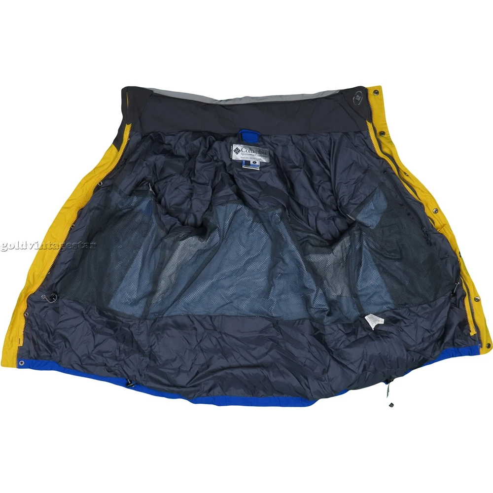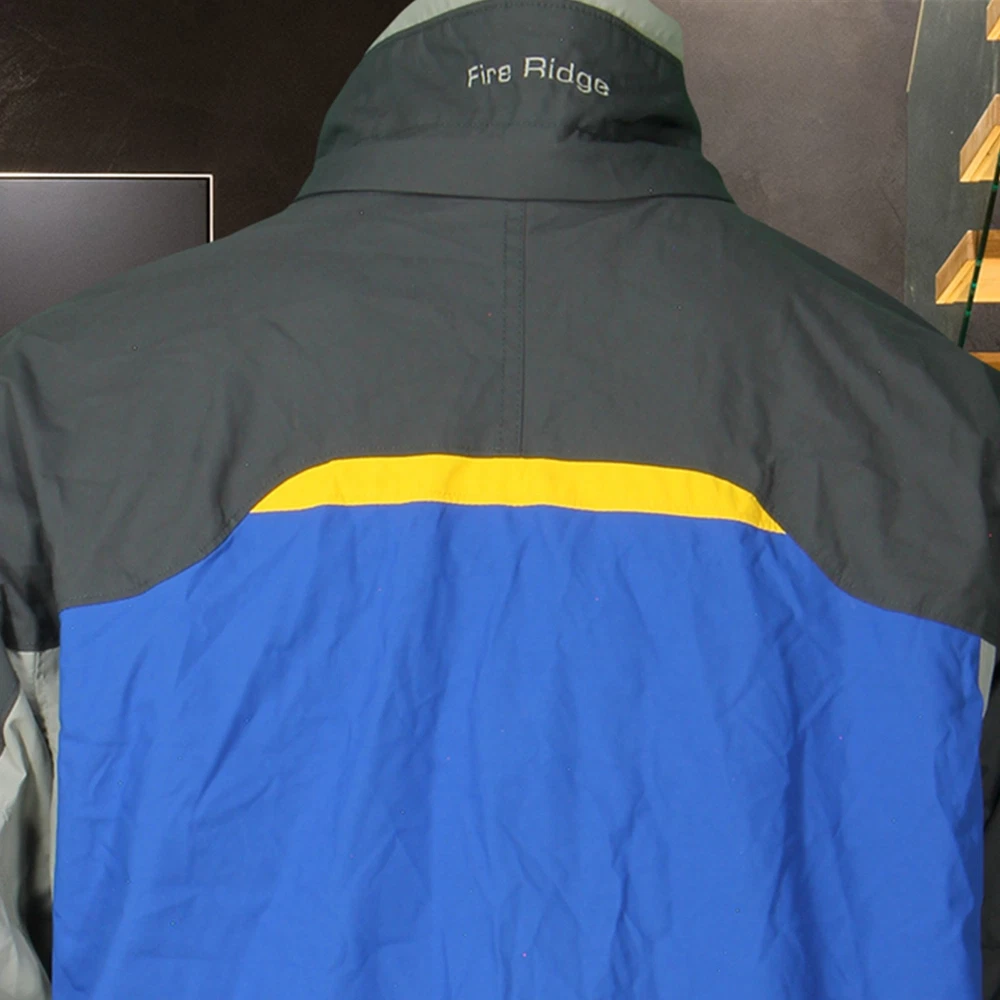 This Columbia Fire Ridge Jacket embodies the fusion of style and practicality. Its layered design offers optimal warmth and comfort for winter sports. A timeless piece for outdoor enthusiasts, it's crafted for both durability and aesthetic appeal. Capture these moods: robust construction, adventure-ready, winter warmth, slope style, outdoor adventure appeal, layered comfort, functional design, essential outerwear, ski essential, practical elegance, mountaineering chic material:100% nylon made in Vietnam color: gentian blue, anthracite gray, light gray, colza yellow condition: 10/10, missing liner, missing hood size on tag: L mannequin is 6' 2" and a size medium length (from the front on either side of the collar down to the bottom edge): 30 armpit to armpit:26.5 collar to end of cuff:32 16586