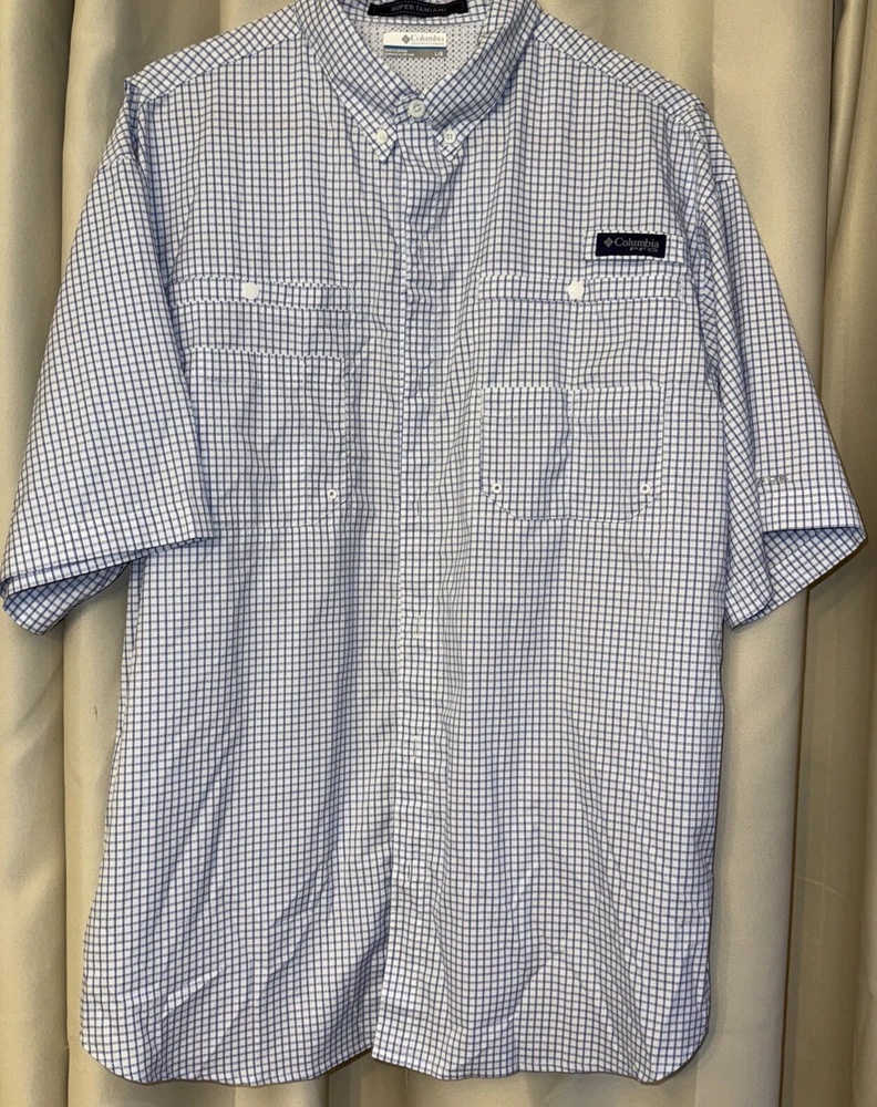 Crafted for comfort and functionality, this Columbia Fishing Shirt is an ideal addition to any outdoor enthusiast's wardrobe. The blue and white check pattern offers a classic look, while the jersey fabric ensures a breathable fit that's perfect for warmer spring and summer days. With features like easy care, quick dry, and wrinkle resistance, this shirt is as practical as it is stylish. The shirt boasts a regular fit with a button-down collar and short sleeves, allowing for ease of movement and a relaxed casual style. It's part of the Columbia Bonehead line, known for its durability and UV protection, making it suitable for a variety of settings from everyday wear to outdoor fishing trips. Complete with a vented back for added breathability and a logo that signifies its quality, this shirt is a go-to for those who value both fashion and performance.