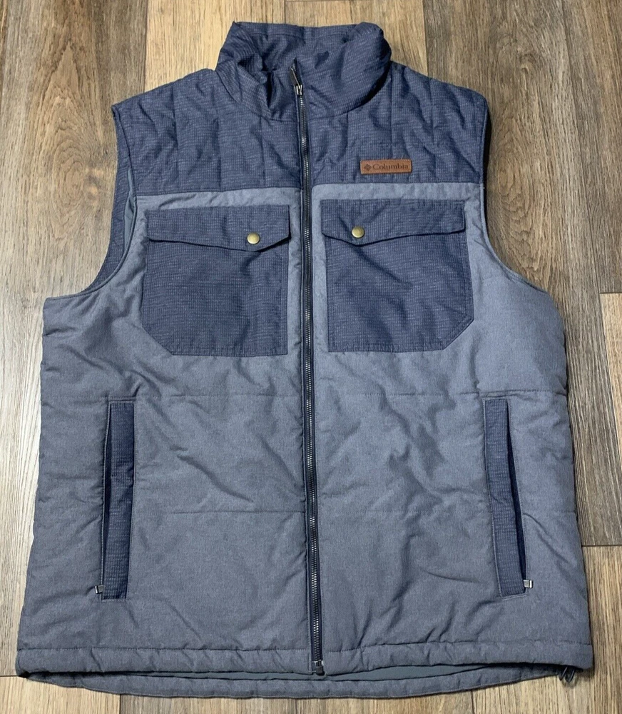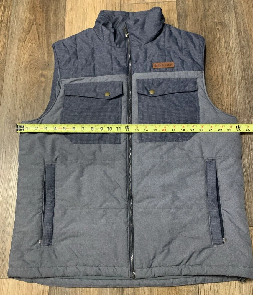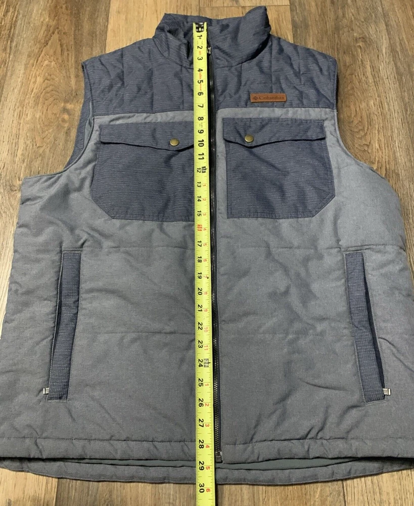 Size Type: Regular Brand: Columbia Season: Fall, Spring, Winter Color: Blue Gray Insulation Material: Polyester Closure: Zip Collar Style: Stand-Up Type: Vest Garment Care: Machine Washable Chest Size: 48 in. Pattern: Solid Department: Men Occasion: Casual, Travel, Workwear Seller Notes: “Good condition. No visible stains or flaws. See photos for detail.” Fit: Classic Size: L Features: Lightweight Outer Shell Material: Nylon Jacket/Coat Length: Mid-Length Accents: Logo Theme: Classic, Outdoor, Sports Country/Region of Manufacture: Vietnam Style: Puffer Vest Lining Material: Nylon Fabric Type: Softshell