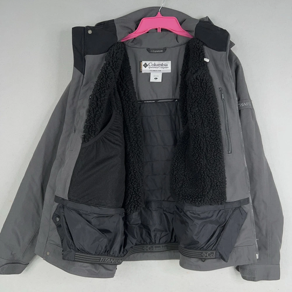 Columbia Jacket Mens Large Gray Titanium OmniTech Coat Performance Hike Ski Gorp Condition: Good pre-owned condition. Light general wear from normal use, no major stains or rips noted. All zippers and snaps functional. Omni-Tech high performance waterproof/breathable shell Features hood with drawcord, zip and snap front closure, three zippered front pockets Soft plush fleece interior lining for warmth and comfort Size: Large (Mens) - See photos for actual measurements Excellent for cold, wet winter outdoor activities, hiking, or everyday winter wear Measurements: - Previous washings may change the sizing written on the tag. - Please refer to the photos above for all measurements. - Please compare our measurements to that of one of your favorite garments. - Please note, item measurements are approximate . All items are bagged and sealed after being photographed, then stored in a smoke free environment to ensure the item is exactly the same as when photographed. All items have been washed per eBay standards & policies. I carefully package and ship daily. Feel free to contact me with any questions.