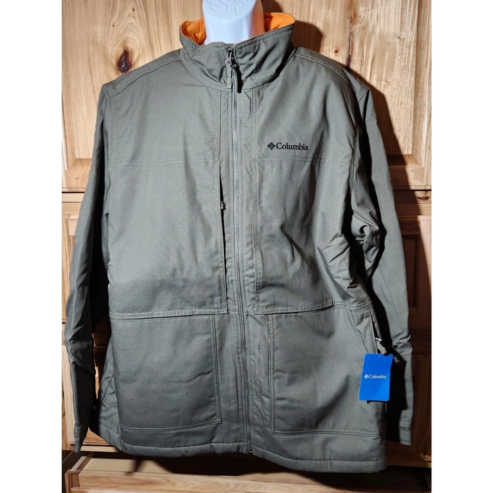 men's size 2X Columbia Loma Vista II Jacket stone green color, orange on the collar, camo print on the inside adjustable sleeve cuffs new condition with tags Please go by the photo and written description (not auto fill) for item details. Any questions, just ask!