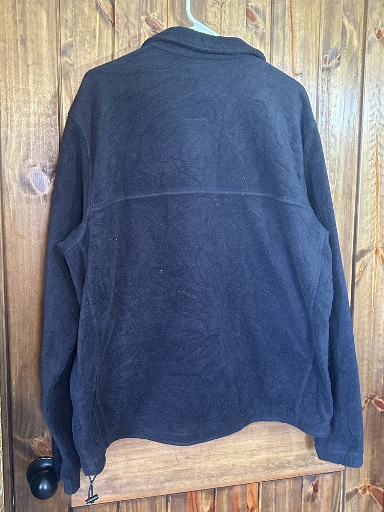 Elevate your winter wardrobe with this stylish black Columbia jacket. Made with soft and cozy fleece fabric, this men's bomber jacket is perfect for cold weather. The zip-up design and XL size make it easy to layer over your favorite shirts and sweaters. Featuring a trendy bomber style and black color, this jacket is perfect for any casual or outdoor occasion. The polyester outer shell material ensures durability and the fleece fabric type adds extra warmth. Don't miss out on this must-have addition to your wardrobe.
