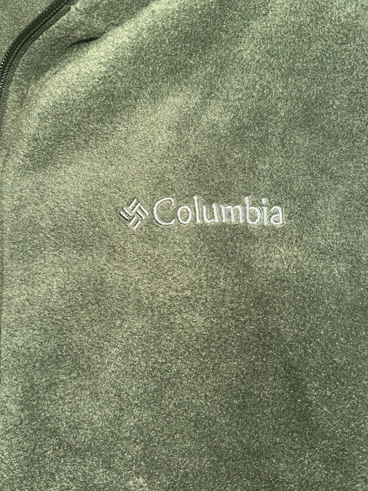 The Columbia Men’s Large Full Zip Fleece Vest in Olive Green is a versatile and stylish outerwear option for men. Made from polyester fleece, this sleeveless vest is perfect for various occasions such as travel, casual outings, parties, and workwear. The full zip closure, stand-up collar, and embroidered logo accents add a classic touch to the vest. With features like lightweight design, breathable fabric, and pockets for convenience, this vest is suitable for all seasons and outdoor activities like walking, golf, and hiking. The mid-length design and regular fit make it a comfortable and practical choice for men's wardrobe.