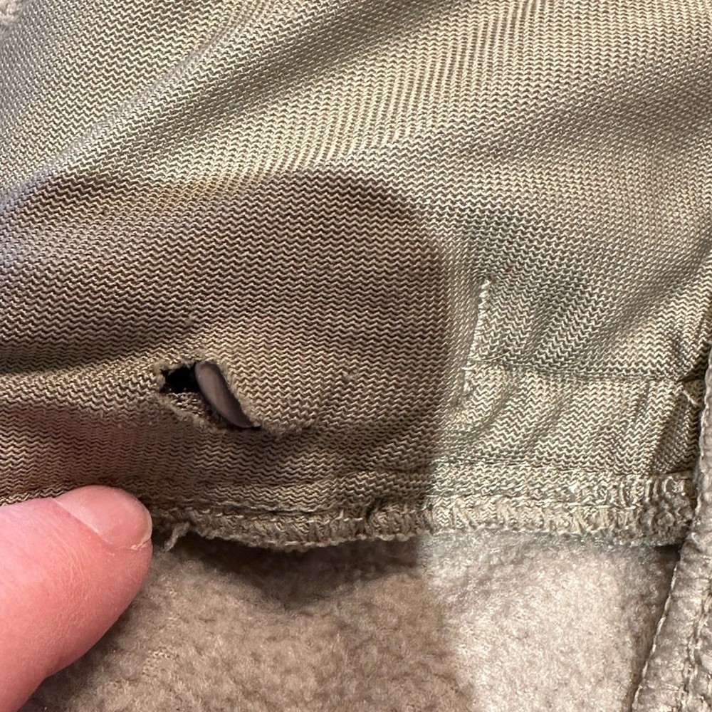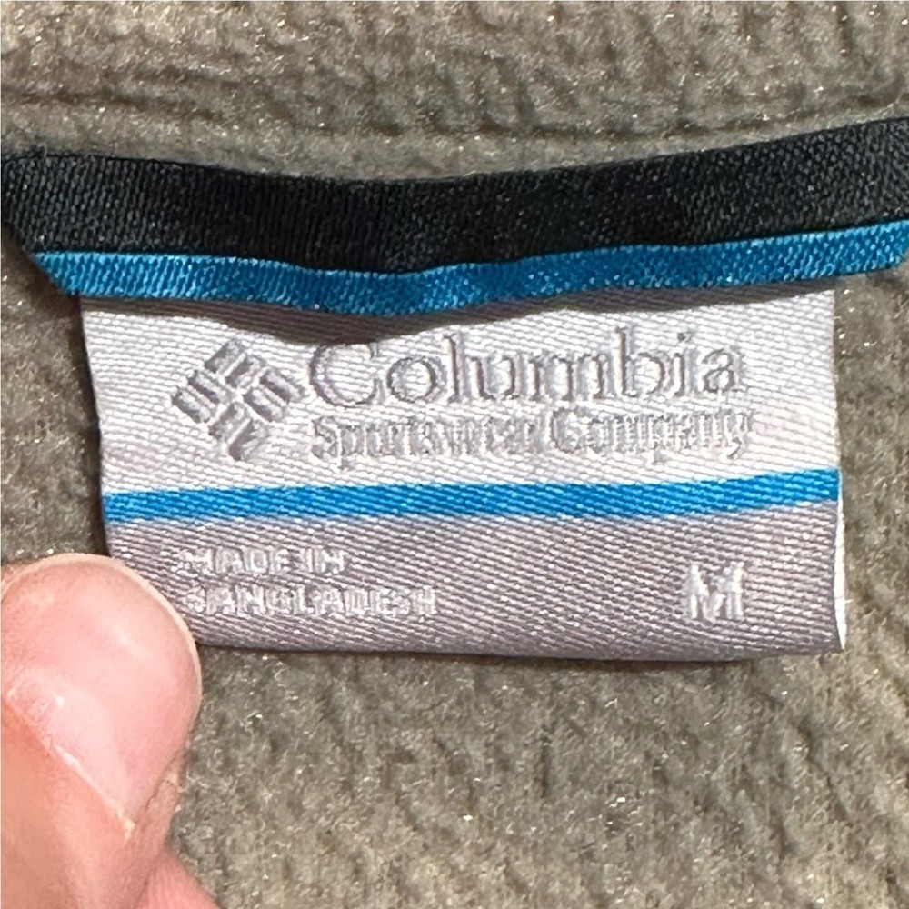 This is a great jacket from Columbia in a Mens medium. Light olive/tan color in great gently used condition. The pocket does have a small hole inside where zipper rubs. Otherwise in great shape.