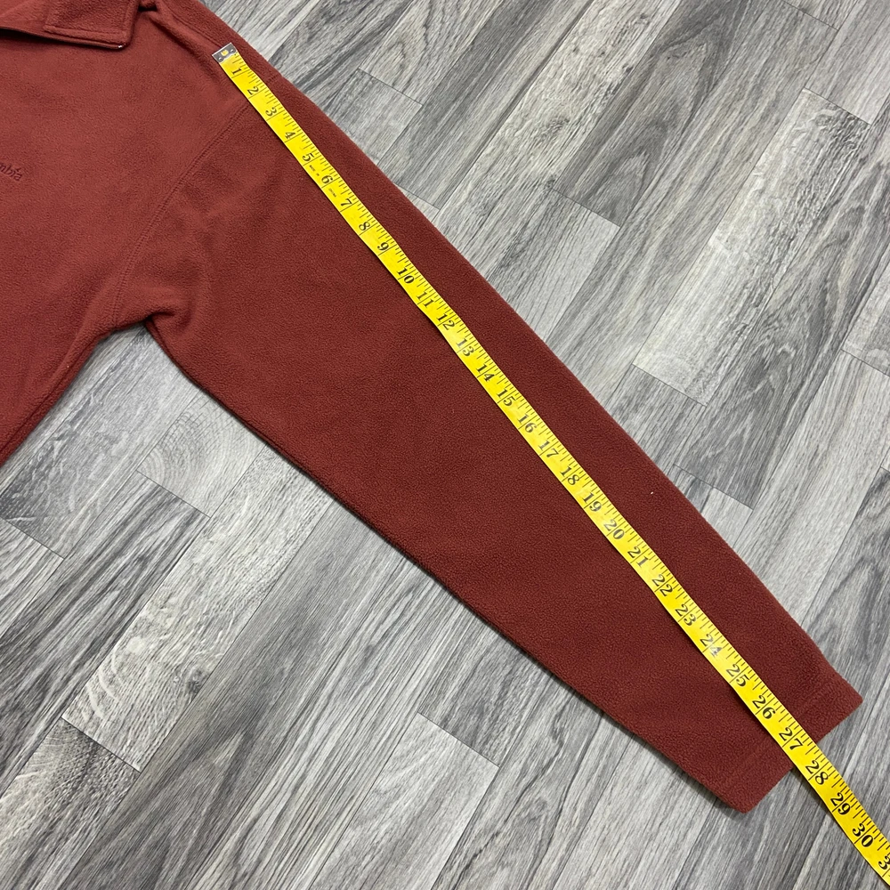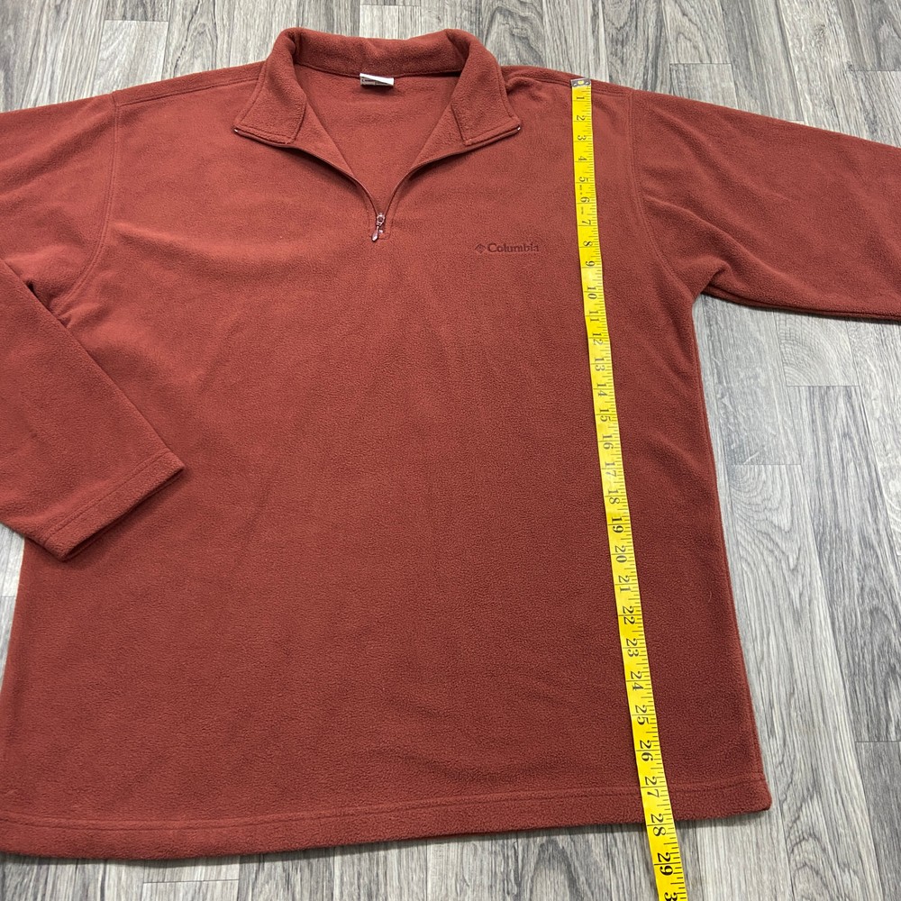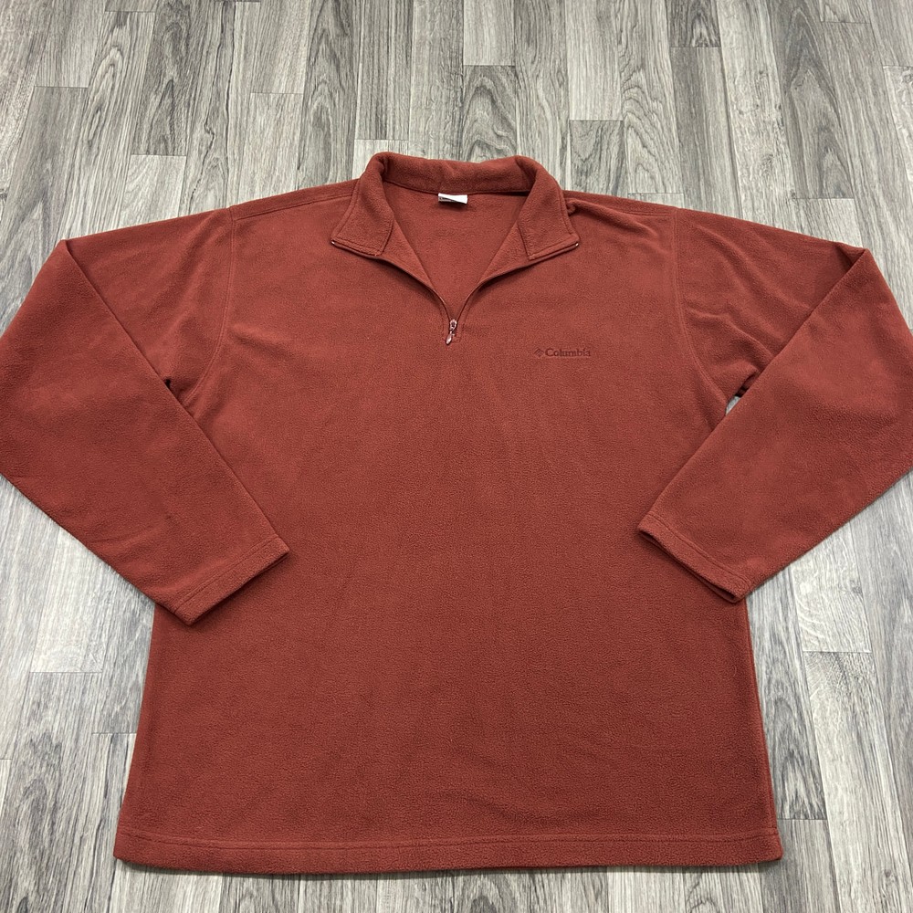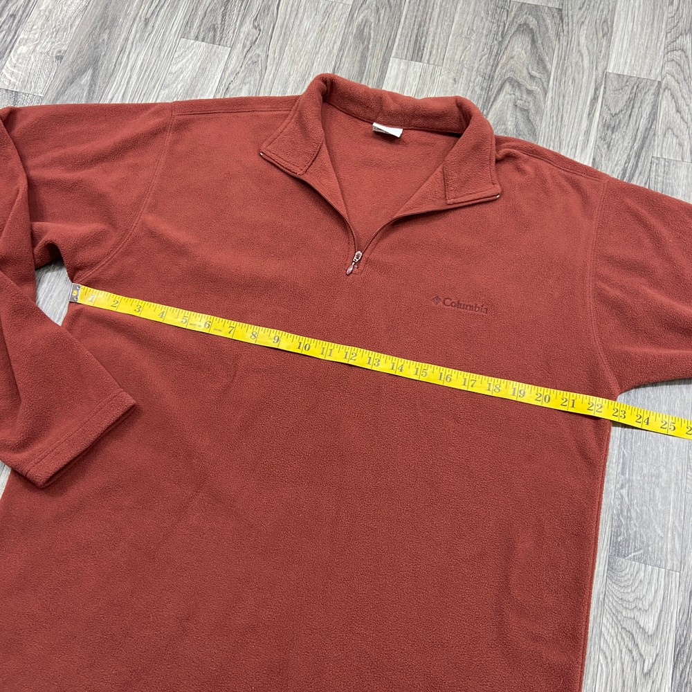This is a nice and comfortable COLUMBIA SPORTSWEAR 1/4 Zip Up Pullover Rust Fleece Jacket Men's Size Large BRAND: COLUMBIA SPORTSWEAR STYLE: 1/4 Zip Up Pullover Rust Fleece Jacket Color: Rust Size: Large Measurements: Chest 30 Length 28 Sleeve 27 Condition: Excellent gently used preowned condition with minimal signs of wear and tear as seen in images. Materials: 100% Polyester --- FAST SHIPPING --- --- 60 day return period so you have a 100% MONEY BACK GUARANTEE! --- Thank you for your interest, this item includes FAST SHIPPING & One Day Handling Time We are a small business and we take a lot of pride in making sure that our descriptions are accurate. We take as many pictures as we can so that you know exactly what you are getting! We offer 60 day return period so you have a 100% MONEY BACK GUARANTEE! Smoke Free, Pet Free, Good Clean Home. Thank you for shopping with us and please visit our Ebay Store for other items available. 322-0841 Listing and template services provided by inkFrog
