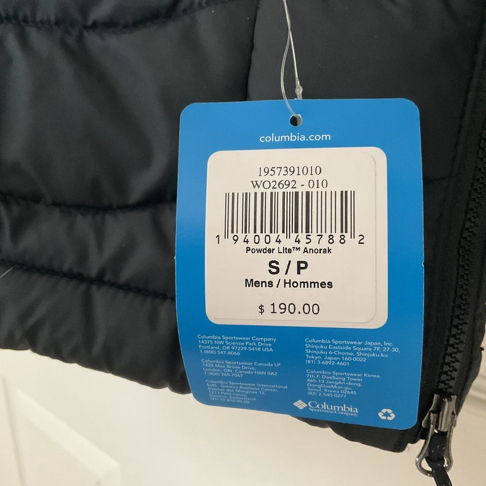 Size: S Country/Region of Manufacture: Bangladesh Brand: Columbia Model: Columbia Powder Lite Lining Material: Polyester Size Type: Regular Type: Jacket Color: Black Fit: Regular Features: Heated Insulation Material: Polyester Outer Shell Material: Polyester Theme: Outdoor Department: Men Style: Puffer Jacket