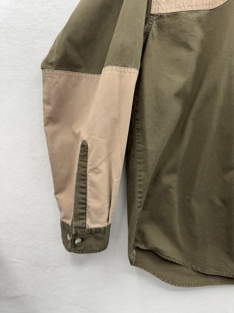Embrace the great outdoors or power through your workday with ease in this versatile Columbia Men’s XL Classic Hunting Shooting Shirt. The colorblock design in green and tan offers a stylish yet practical look for any casual or outdoor occasion. Designed with a collared neckline and long sleeves, this shirt ensures both comfort and coverage for activities that require durability and style. Crafted from quality cotton canvas fabric, this button-up shirt is machine washable for hassle-free maintenance. It features a regular fit that allows for freedom of movement and is equipped with pockets for added convenience. Whether you’re traveling, enjoying a casual day out, or need reliable workwear, this shirt’s timeless design and functional features make it a go-to choice for all seasons.