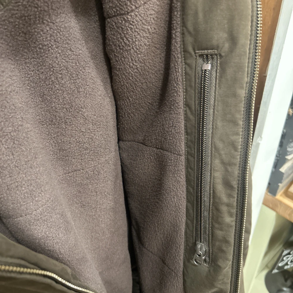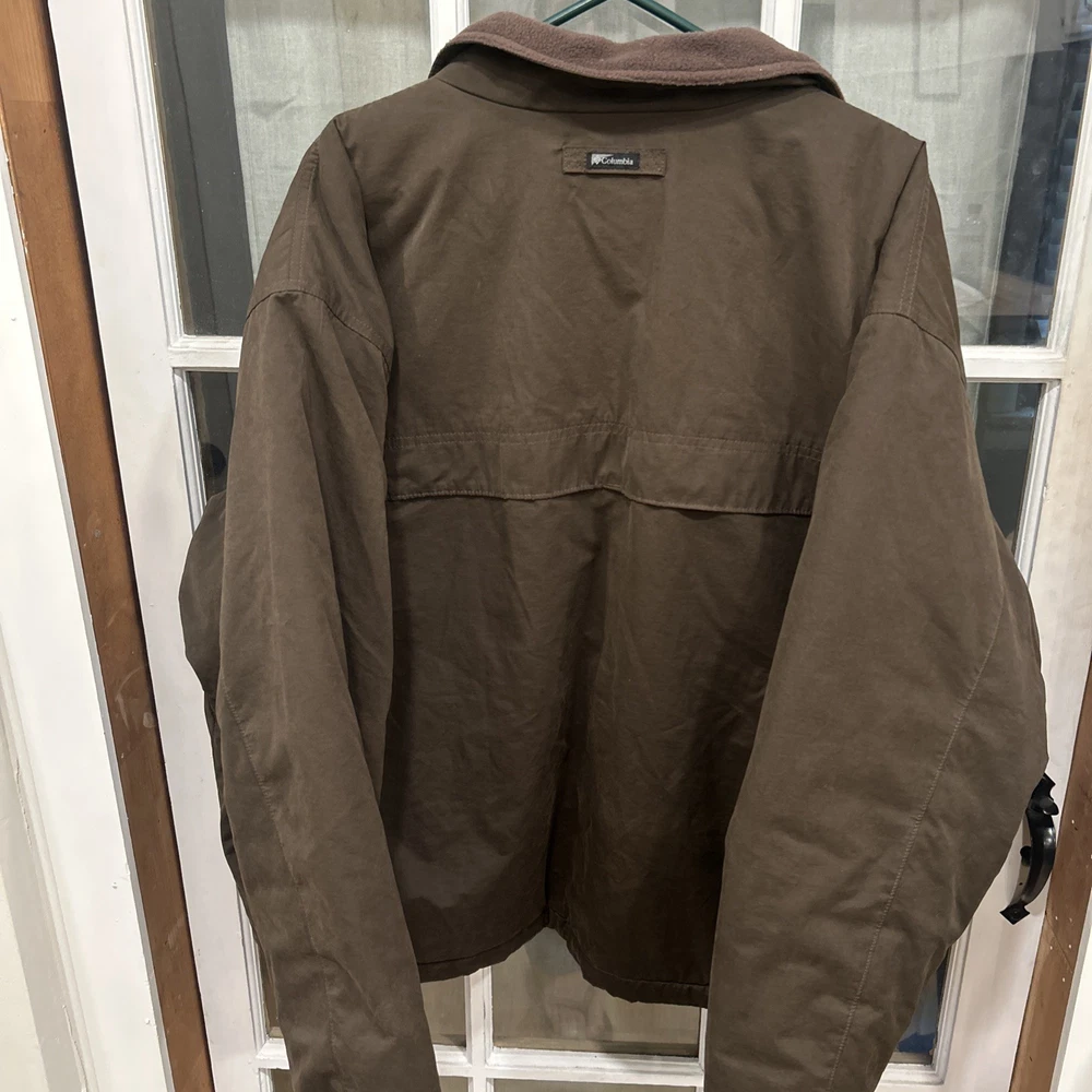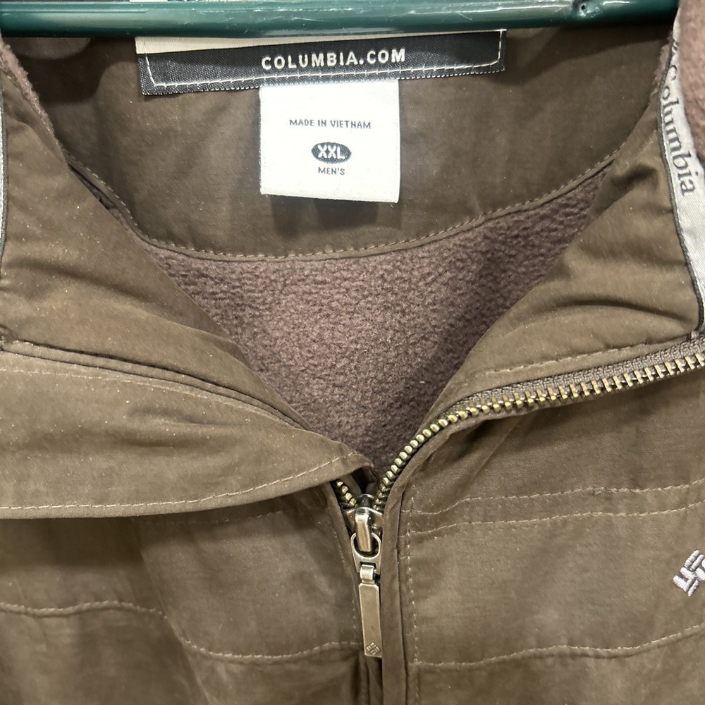 The Columbia Fleece Lined Full Zip Winter Jacket in Men's size XXLarge is a stylish and functional outerwear piece perfect for the colder seasons. Made from polyester with a cozy nylon lining and fleece fabric, this mid-length jacket features a solid brown color and a convenient zip closure. With its puffer jacket style and brand reputation of Columbia, this winter jacket is a practical choice for staying warm and looking good during the winter and fall seasons.