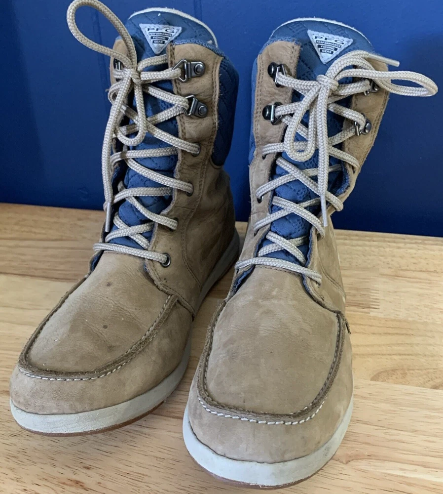 Columbia Outdoor Boots Women's 9 PFG Waterproof Tobacco/Oxford Blue Cabincore