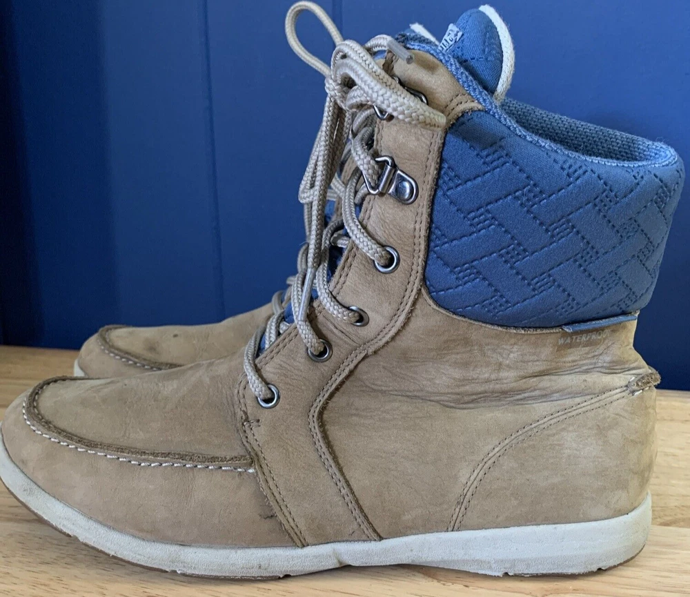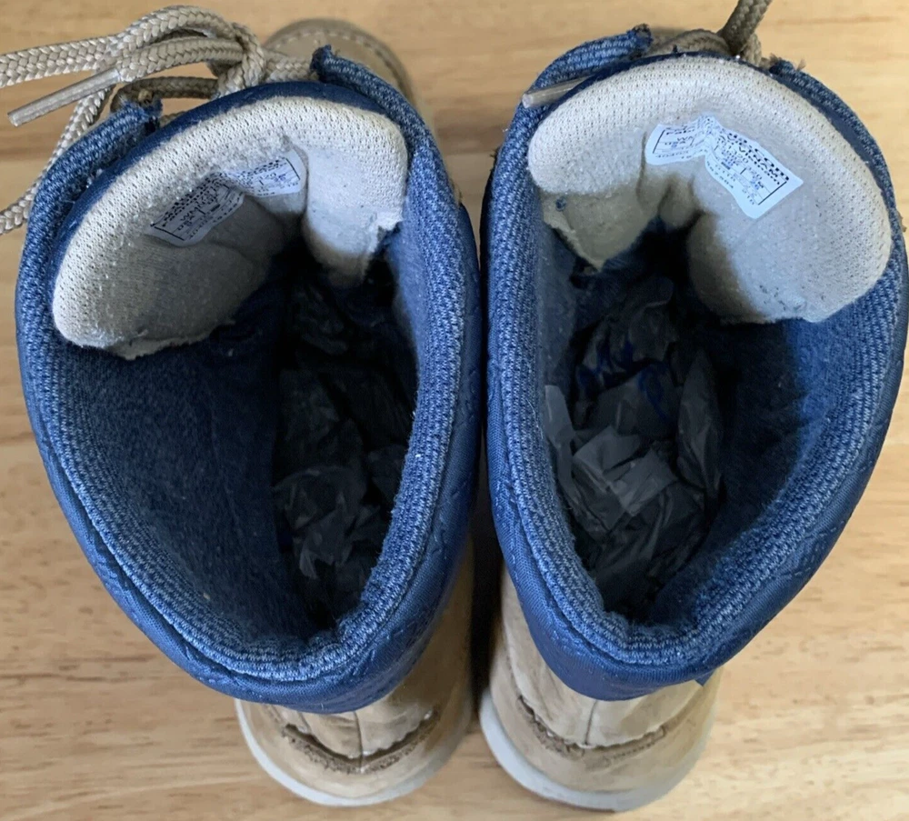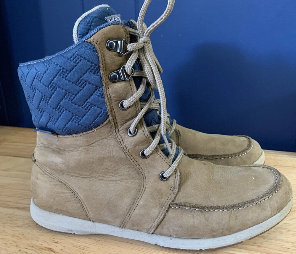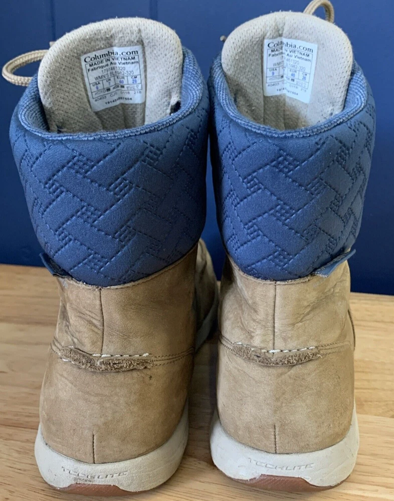 Occasion: Activewear, Casual, Travel Heel Style: Flat Toe Shape: Round Toe Seller Notes: “Good condition. Lightly worn. No other visible flaws. See photos for detail.” UK Shoe Size: 7 US Shoe Size: 9 Season: Fall, Spring Closure: Lace Up Department: Women Brand: Columbia Theme: Outdoor Model: Standard Type: Boot Features: Waterproof Country/Region of Manufacture: Vietnam Upper Material: Leather Platform Height: 1 in Style: Riding, Equestrian Pattern: Solid Color: Tan/Blue