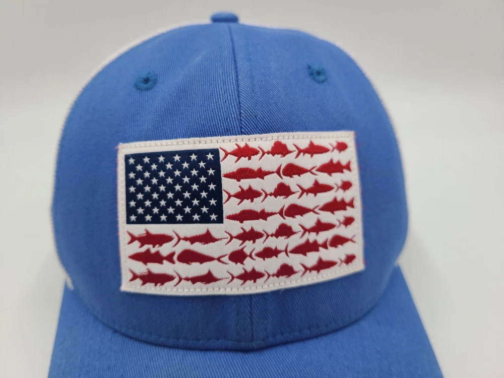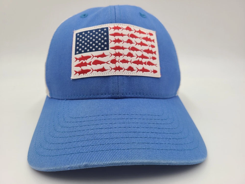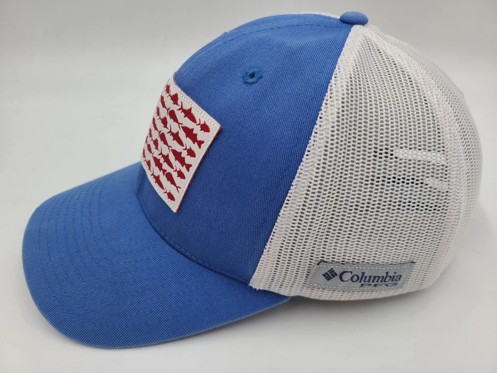 Has stains/discoloration on the back and underneath the brim as seen in photos. Columbia PFG American Flag Mesh Trucker Snapback Hat Cap Men Women Blue White. EACH ADDITIONAL HAT PURCHASED IS ONLY $1 ADDED SHIPPING!