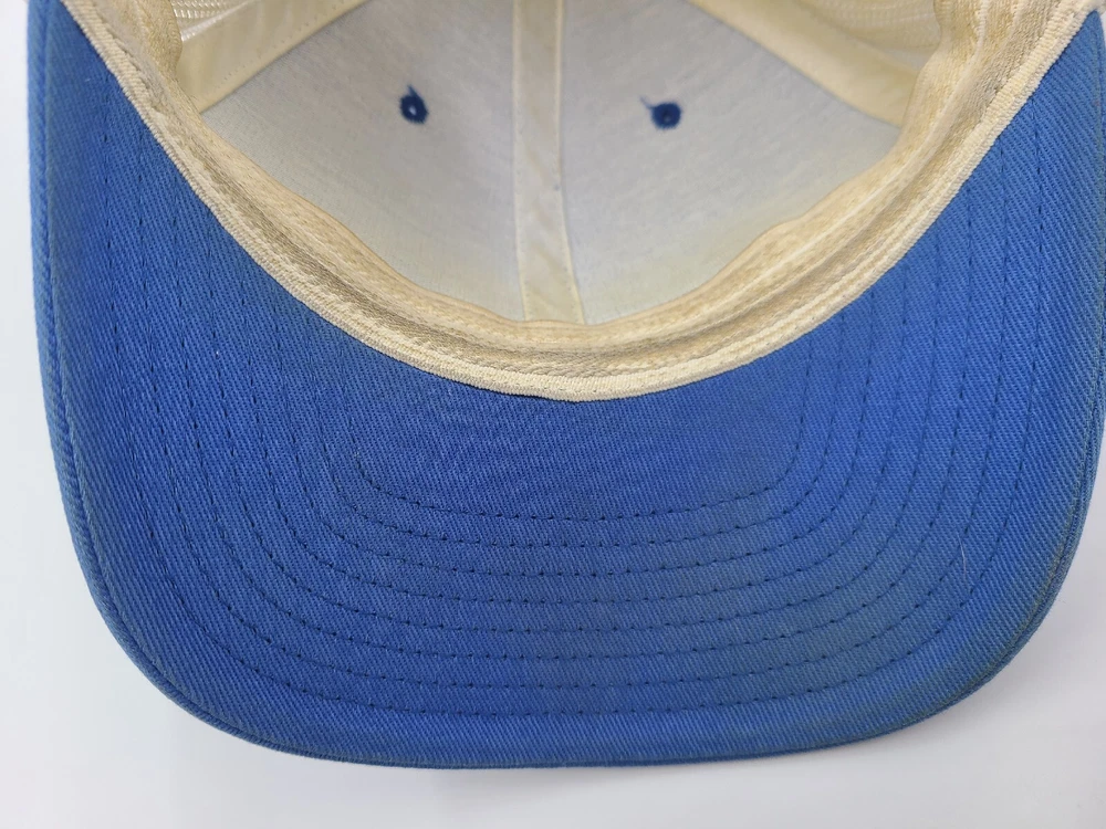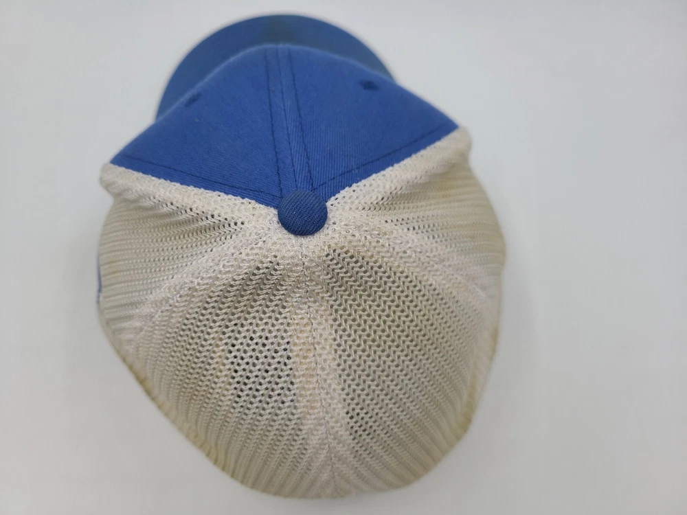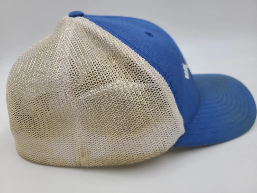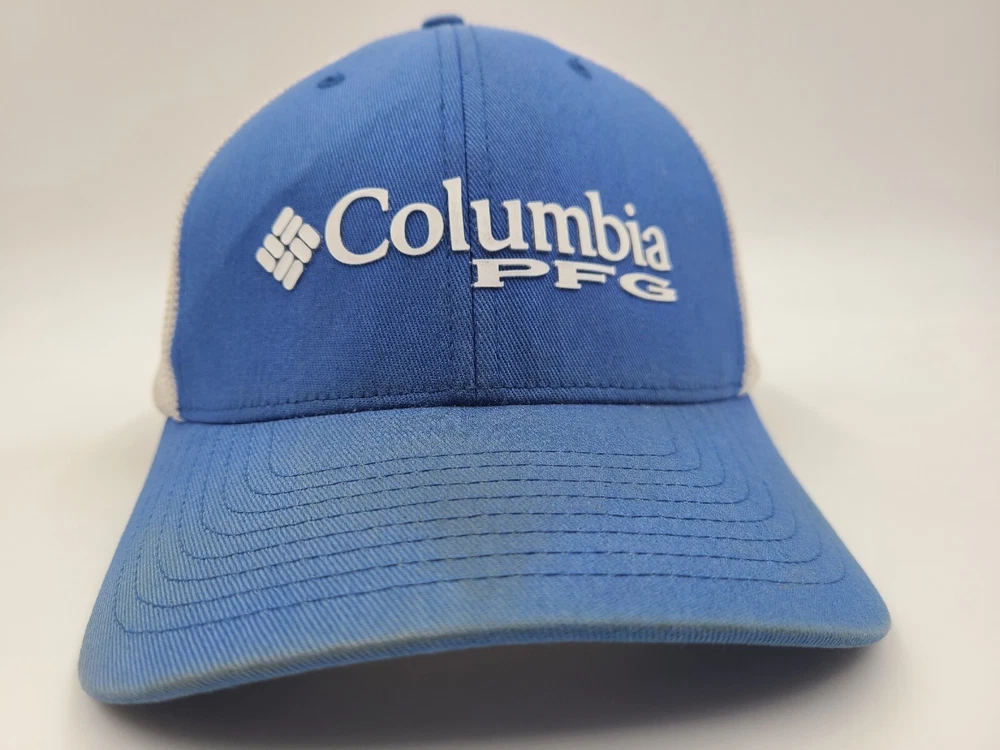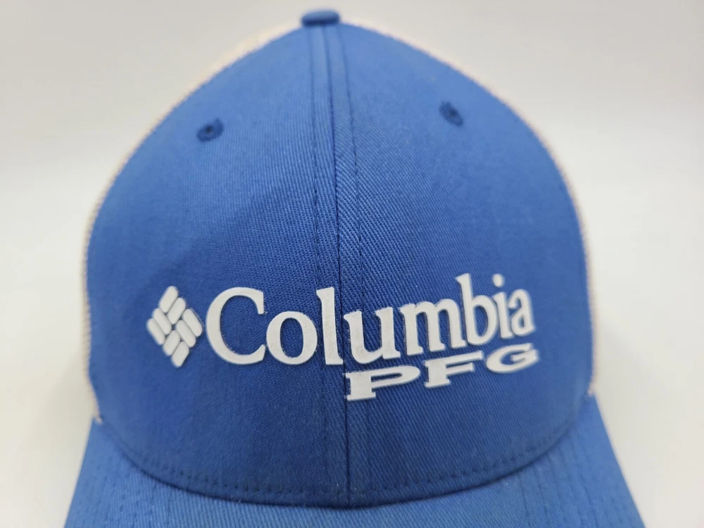 Has stains/discoloration all around the hat as seen in photos. Columbia PFG Distressed Mesh Flex Fitted L-XL Hat Cap Dad Men Women Blue White. EACH ADDITIONAL HAT PURCHASED IS ONLY $1 ADDED SHIPPING!