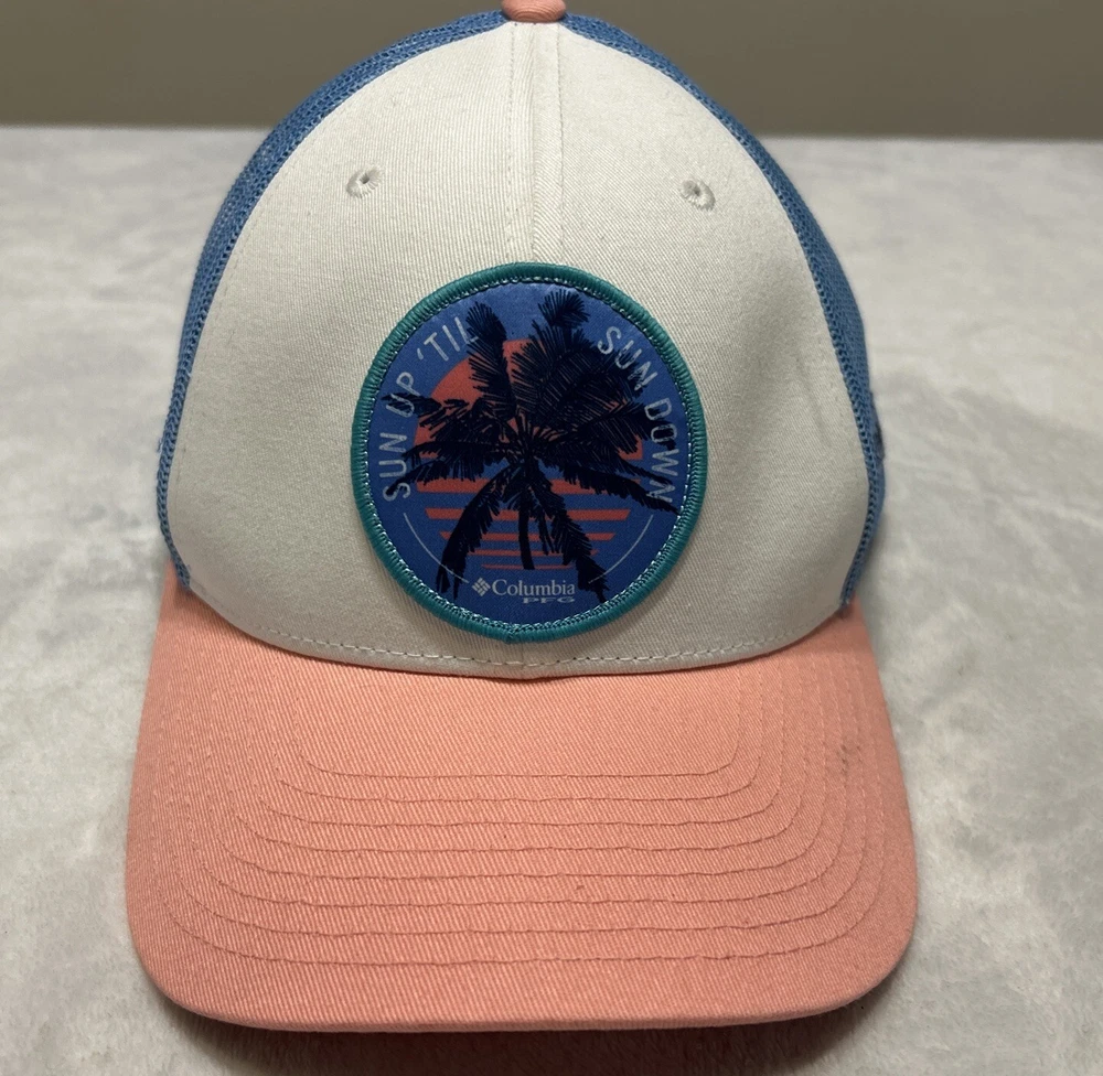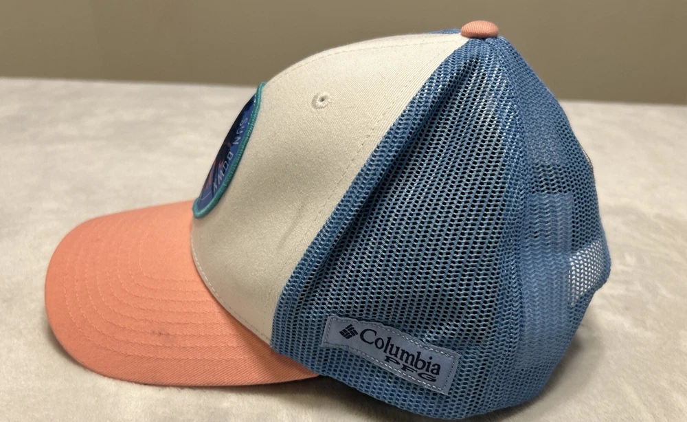 Columbia PFG Hat Women’s SnapBack One Size White Blue Pink Mesh Trucker Tropical
