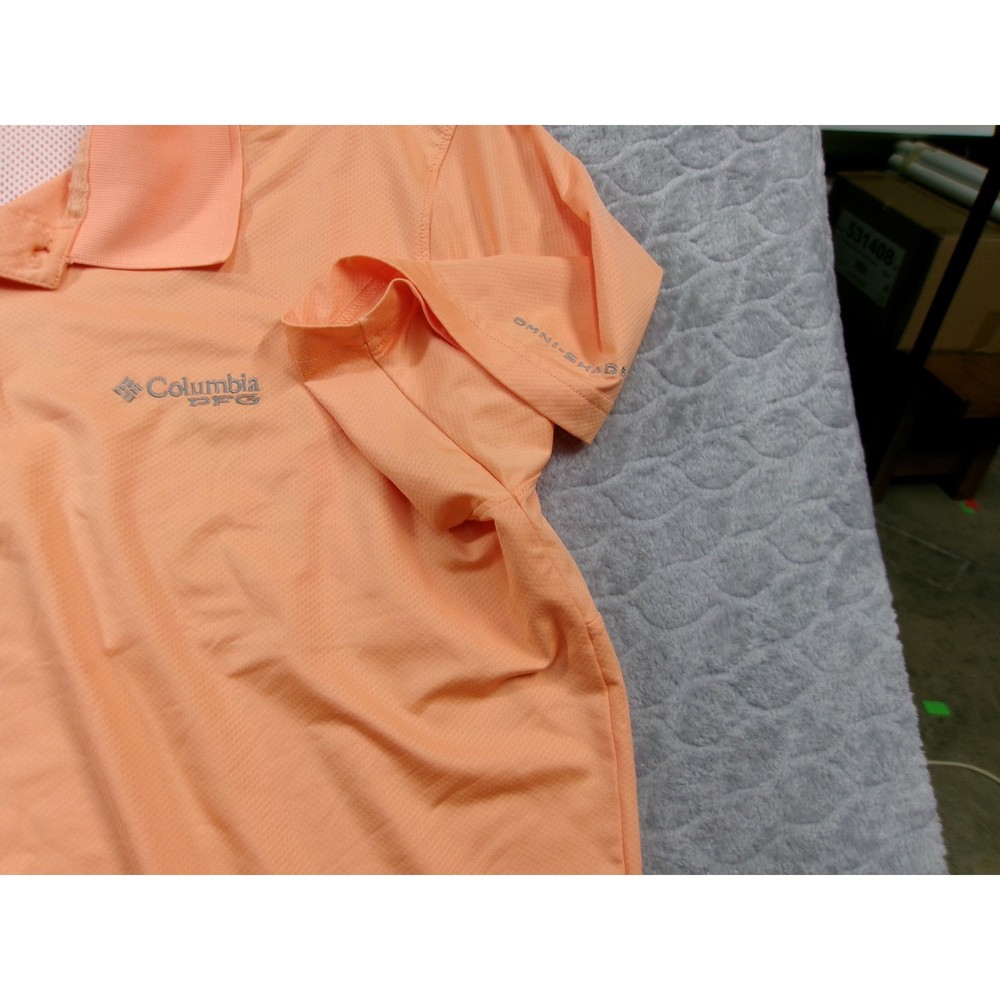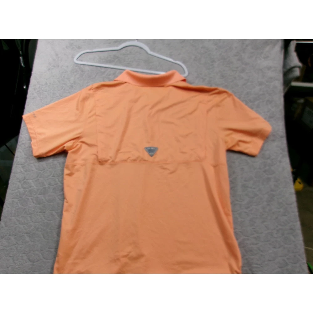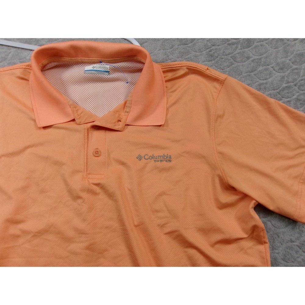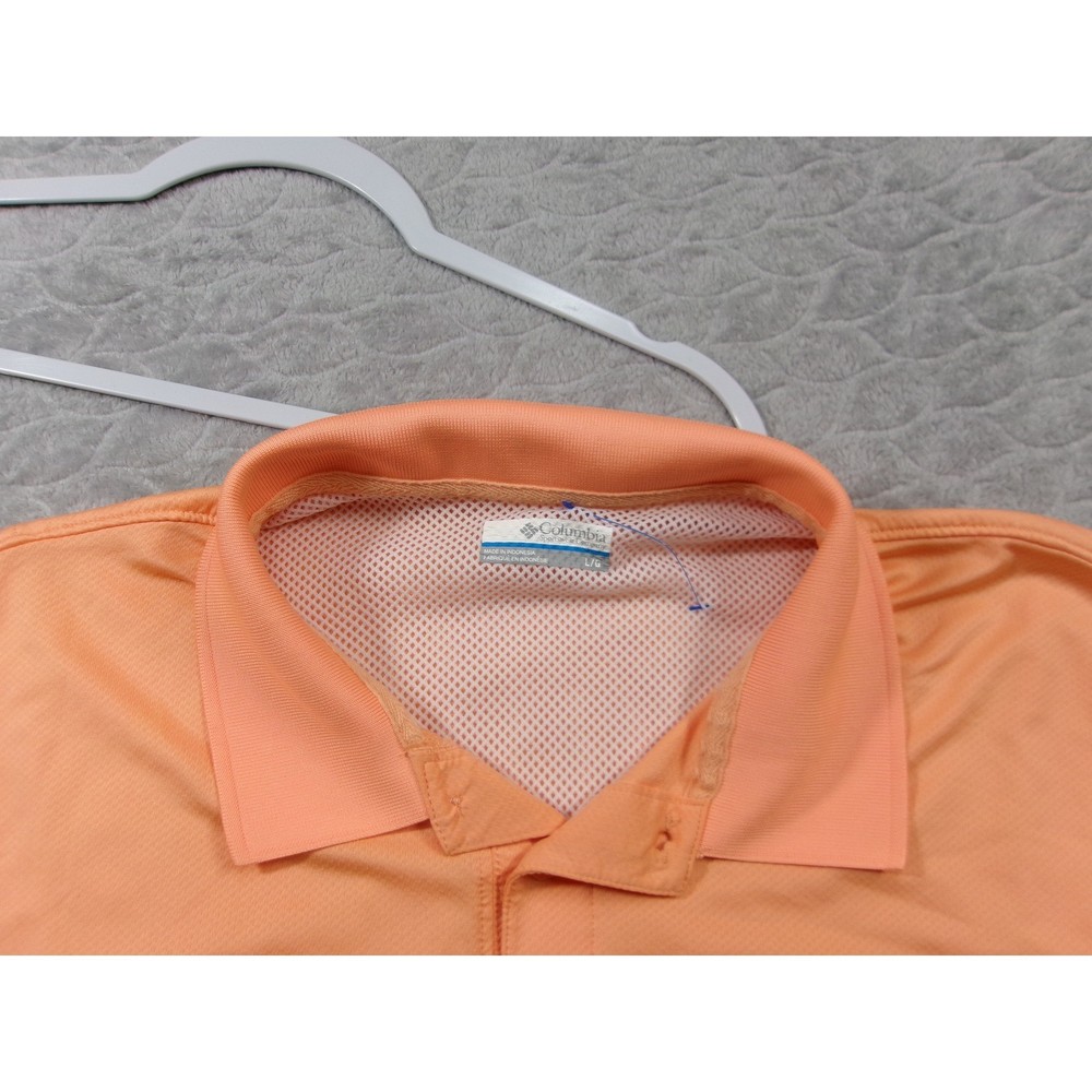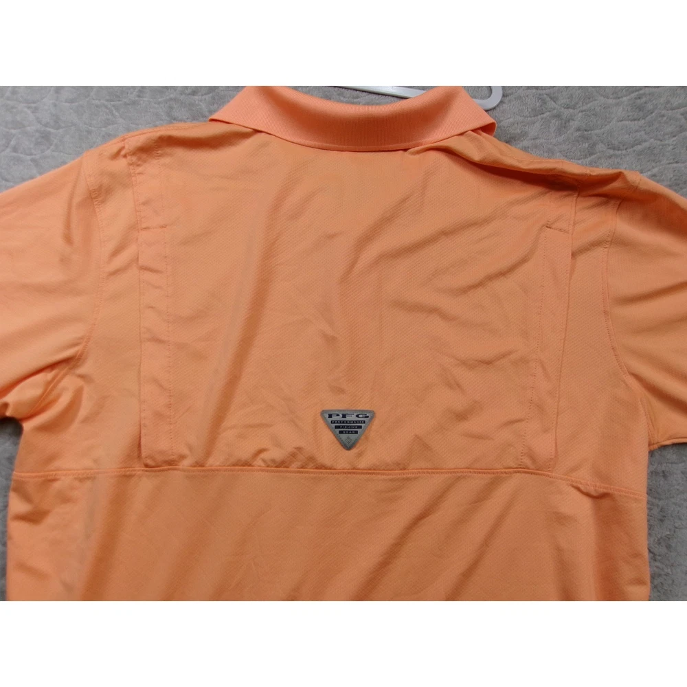 Features: Moisture Wicking, Lightweight Neckline: Collared Size Type: Regular Sleeve Length: Short Sleeve Performance/Activity: Golf Model: Columbia PFG Omni-Shade Signed: No Season: Summer Type: Polo Pattern: Solid Department: Men Fit: Regular Accents: Logo, Button Occasion: Activewear, Casual Handmade: No Closure: Button Size: L Collar Style: Button-Down Seller Notes: “Great condition...no noticeabl flaws” Theme: Sports Fabric Type: Mesh Style: Basic Sleeve Type: Casual Sleeve Personalize: No Color: Orange Chest Size: 46 in Brand: Columbia Shirt Length: 28 in Material: Polyester Vintage: No