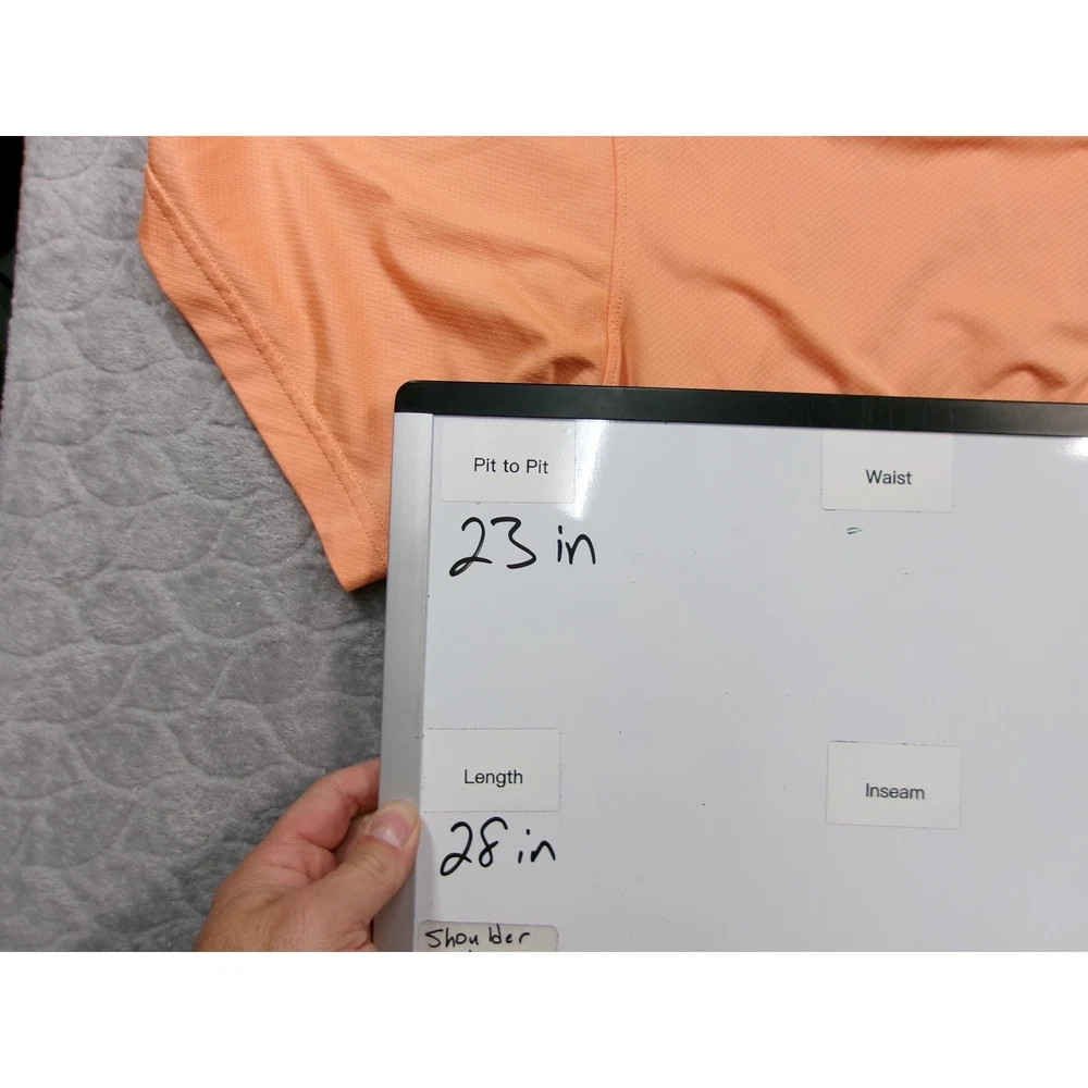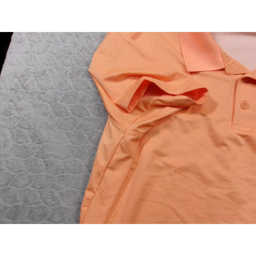 Experience ultimate comfort and performance with this vibrant Columbia PFG polo shirt. Designed for active days, its quick-drying fabric and breathable mesh collar keep you cool whether you're on the golf course or reeling in a big catch. The subtle Columbia PFG logo on the chest and Omni-Shade technology on the sleeve offer both style and sun protection, making it perfect for outdoor adventures, casual outings, or a relaxed day by the water. Measurements: • Pit to Pit: 23 in • Length: 28 in Type: Polo Department: Men Pattern: Solid Style: Basic Sleeve Length: Short Sleeve Material: Polyester Fit: Regular Neckline: Collared Features: Moisture Wicking, Lightweight Season: Summer Performance/Activity: Golf Occasion: Activewear, Casual Sleeve Type: Casual Sleeve Model: Columbia PFG Omni-Shade Theme: Sports Keywords: Columbia PFG, polo shirt, orange, large, menswear, fishing apparel, golf shirt, quick dry, breathable, sun protection, outdoor, activewear, casual, performance