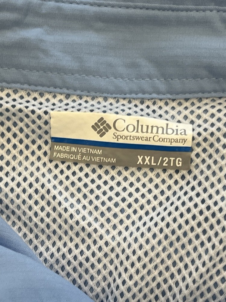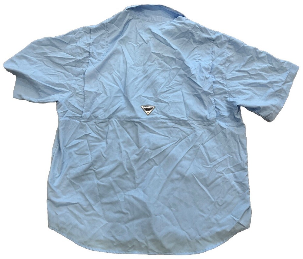 This versatile Columbia PFG shirt is perfect for any outdoor activity, whether it be fishing, camping, or just a casual walk. Its short-sleeved design and collared neckline make it suitable for travel and party/cocktail occasions as well. The shirt is made of a comfortable and breathable microfiber material that is lightweight and durable. It features button-down snaps and a vented design for added convenience and style. The shirt is machine washable and comes in a solid blue color, making it a great addition to any wardrobe.