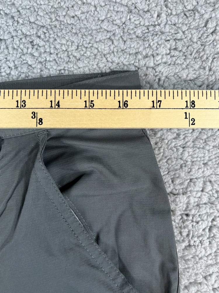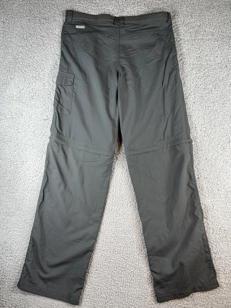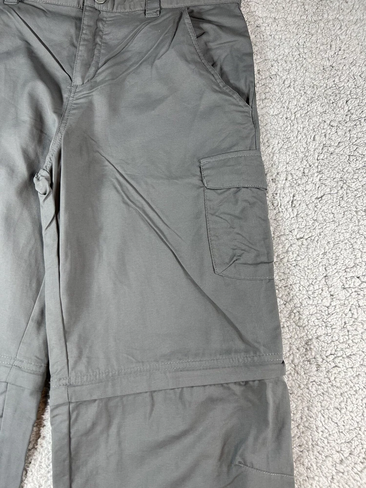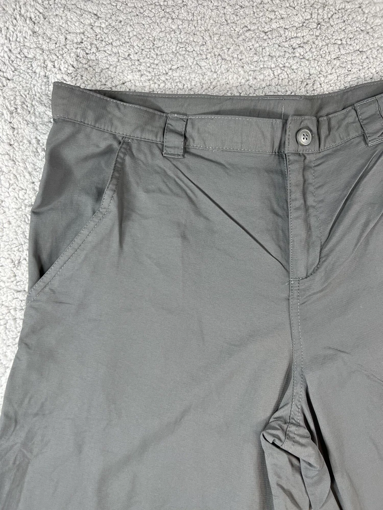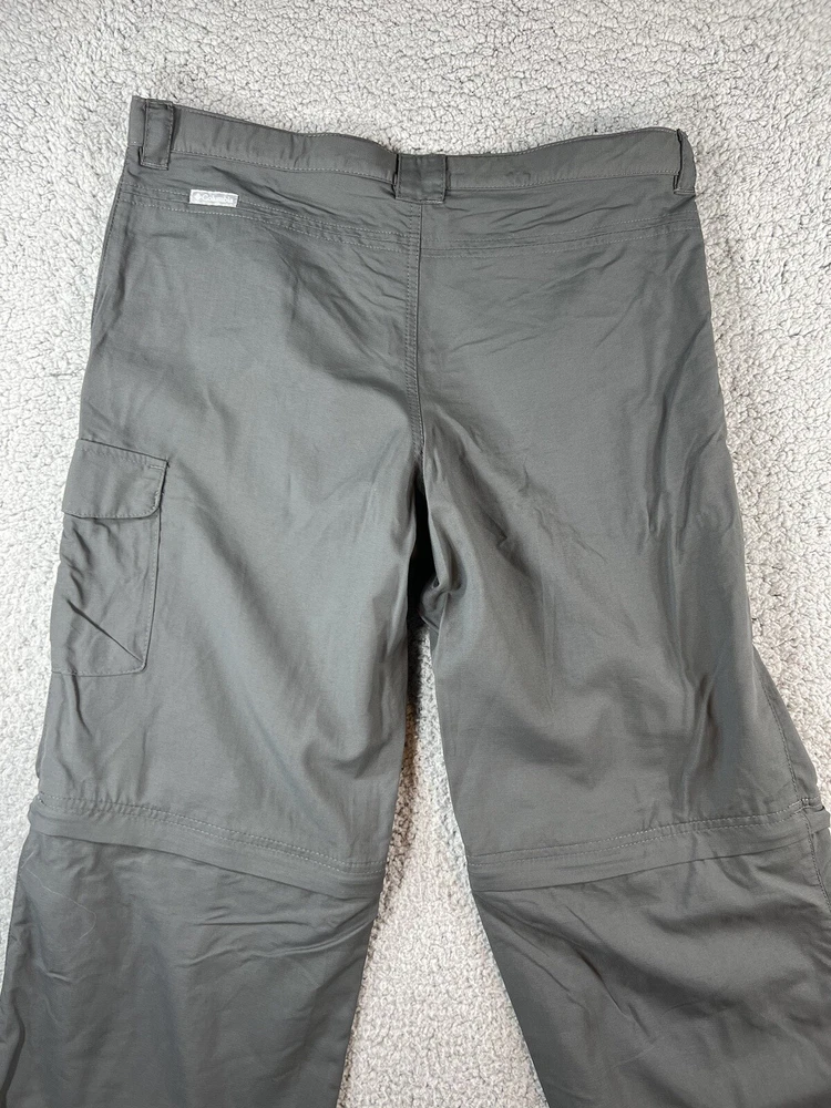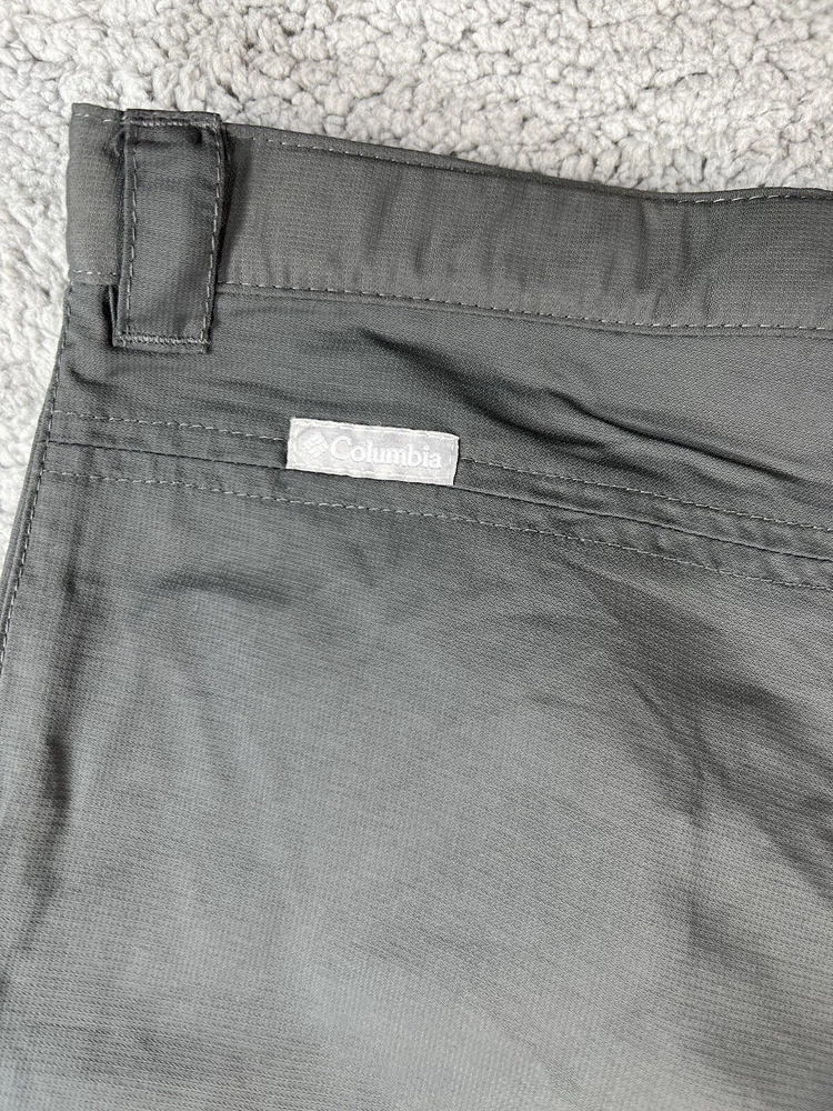 Columbia Gray Convertible Cargo Omni Shade Nylon Hiking Gorpcore Straight Leg Pants. Women's Size XL. Pant leg zips off to convert to shorts. Waistband has adjustable elastic with buttons on inner sides. Beltloops at waistband. 100% nylon material. These pants have 3 pockets. Excellent pre-owned condition. A pproximate measurements: Waist: 16.5 inches flat Rise: 11 inches Inseam: 32 inches Please see measurements as all brands can vary in size.