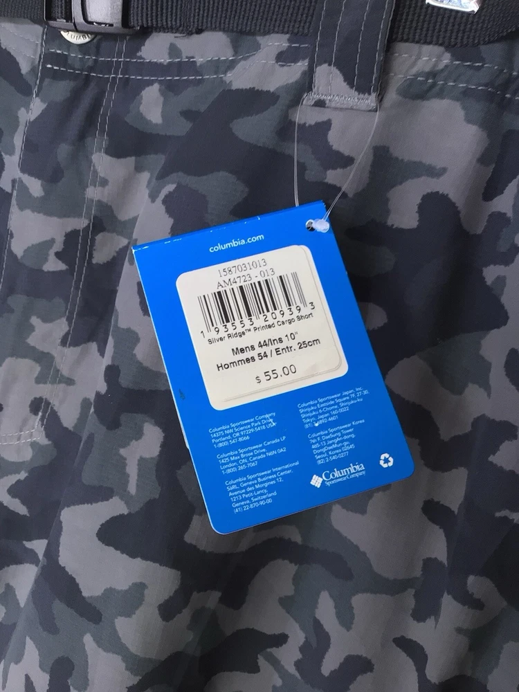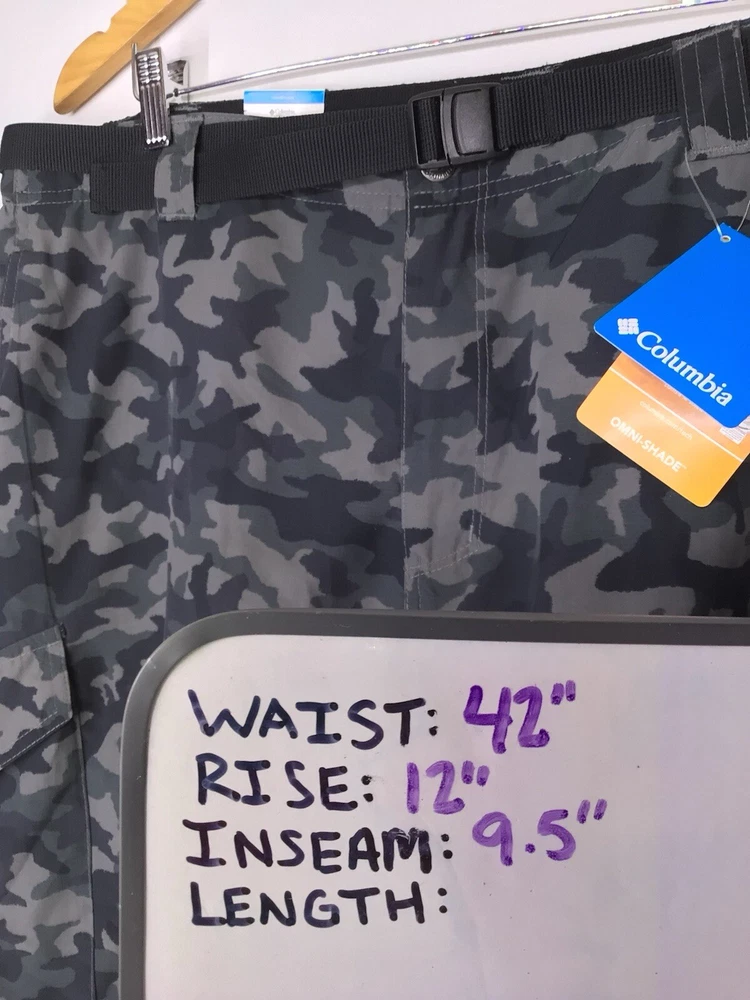 Columbia Silver Ridge Cargo Short Black Camo Men’s Size 44 Belted NEW With Tags. See Photos For Measurements. *** Small Snag Barely Noticeable As Pictured On Front. *** Thank you for the interest in our item. We take pictures to show any defects or problems with the items listed. RETURNS: Your 100% satisfaction is priority to us! We accept returns on items and will refund buyer on cost of item as long as the item is returned in the same condition as it was originally shipped within 30 days. Buyer pays return shipping. SHIPPING: We ship within 3 business days (Monday-Friday), most of the time within 24-36 hrs from time of purchase. We use ground or first class in most cases so you receive the item fast. WE WILL ONLY SHIP TO THE ADDRESS PROVIDED THROUGH EBAY. If a change of address is requested, the order will be canceled. NOTE- Shipping prices are provided directly through USPS. PLEASE CHECK OUT THE OTHER ITEMS IN OUR STORE LICKETYFLIP AND GIVE IT A FOLLOW!