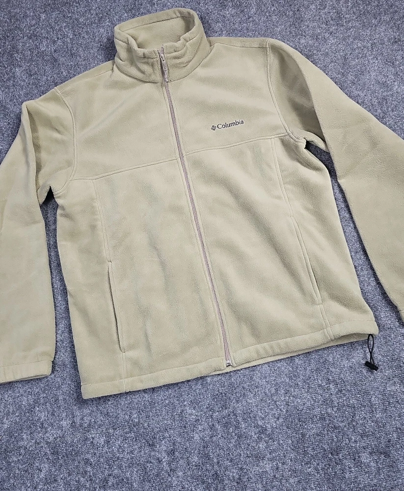 Season: Fall, Spring, Winter Size: L Features: Full Zip Lining Material: Fleece Pattern: Solid Garment Care: Machine Washable Handmade: No Accents: Embroidered, Logo, Zipper Style: Fleece Jacket Outer Shell Material: Fleece Closure: Zip Color: Beige Country/Region of Manufacture: China Size Type: Regular Type: Jacket Brand: Columbia Fabric Type: Fleece Vintage: No Department: Men