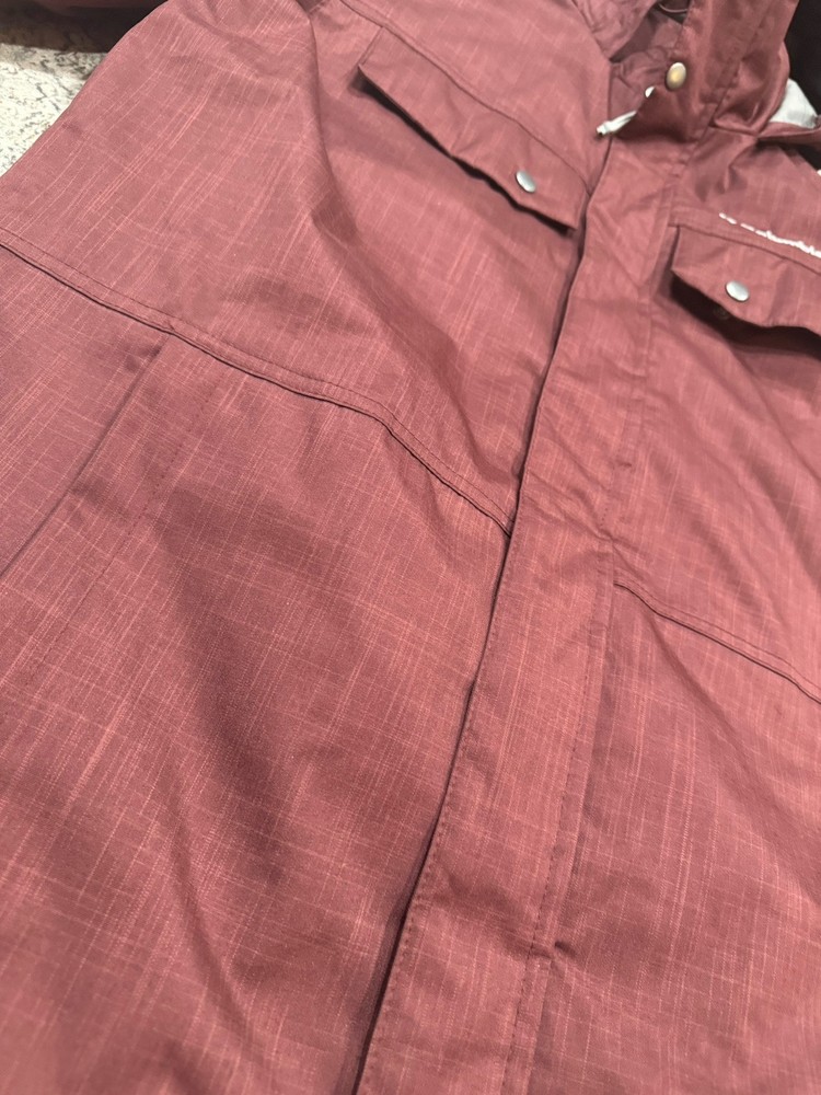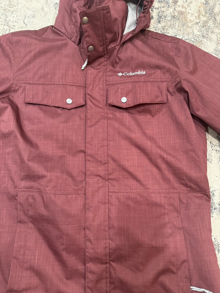 New like condition and hardly worn! This Columbia Tinline Trail Insulated Thermal Jacket is a pre-owned men's coat in size M. The jacket features Columbia's Omni-Heat technology to provide warmth and comfort. The outer shell material is made of polyester in a stylish maroon color. This parka style jacket is designed for regular fit and is suitable for outdoor activities in colder weather. Perfect for adding a pop of color to your winter wardrobe, this Columbia jacket offers both style and functionality for the modern man.