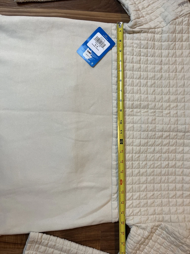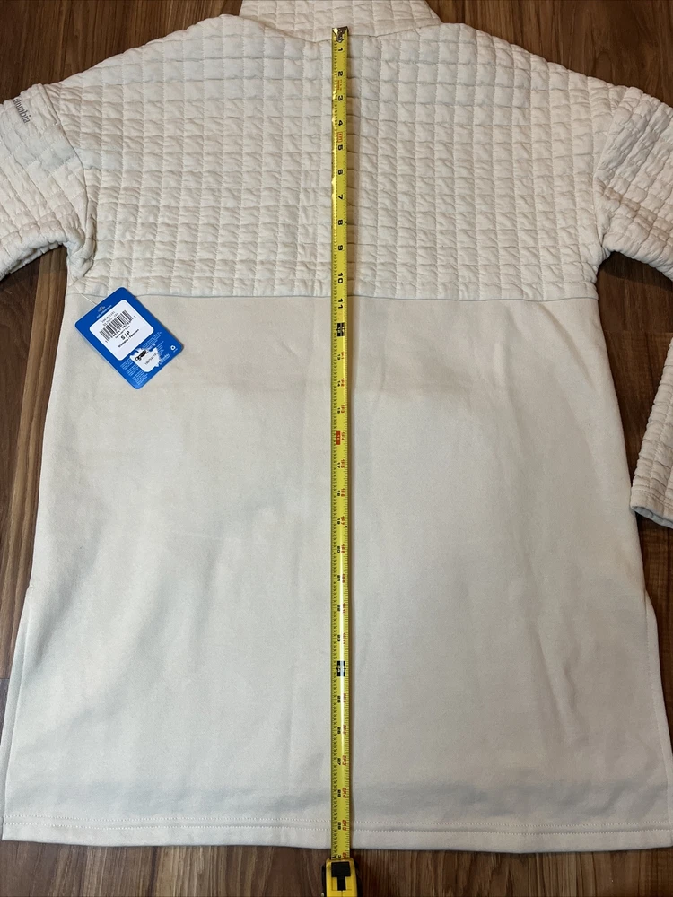 Material: Cotton Blend Size: S Type: Sweater Department: Women Sleeve Length: Long Sleeve Size Type: Regular Occasion: Casual Accents: Quilted Color: Ivory Brand: Columbia Style: Pullover Country/Region of Manufacture: Bangladesh