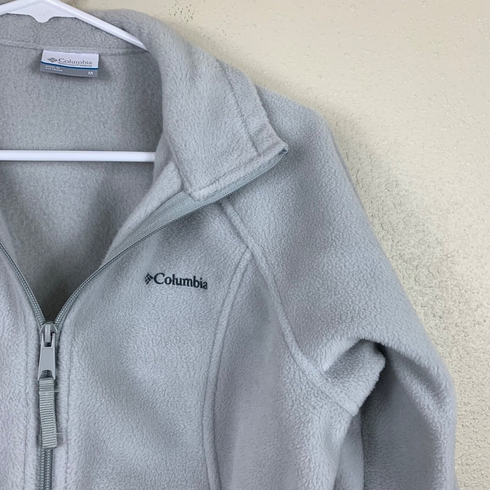 Columbia Women’s Benton Springs Full Zip Fleece Jacket Dove Gray - Size Medium Great preowned condition! Full zip 2 zippered pockets Logo embroidered in dark gray on the chest Super soft Elasticized sleeve cuffs Drawcord at waist Shoulder: 18" P2P: 20" Sleeve: 23" Length: 24" Measurements are lying flat, and estimates only. 1P25 44-5352 15 oz