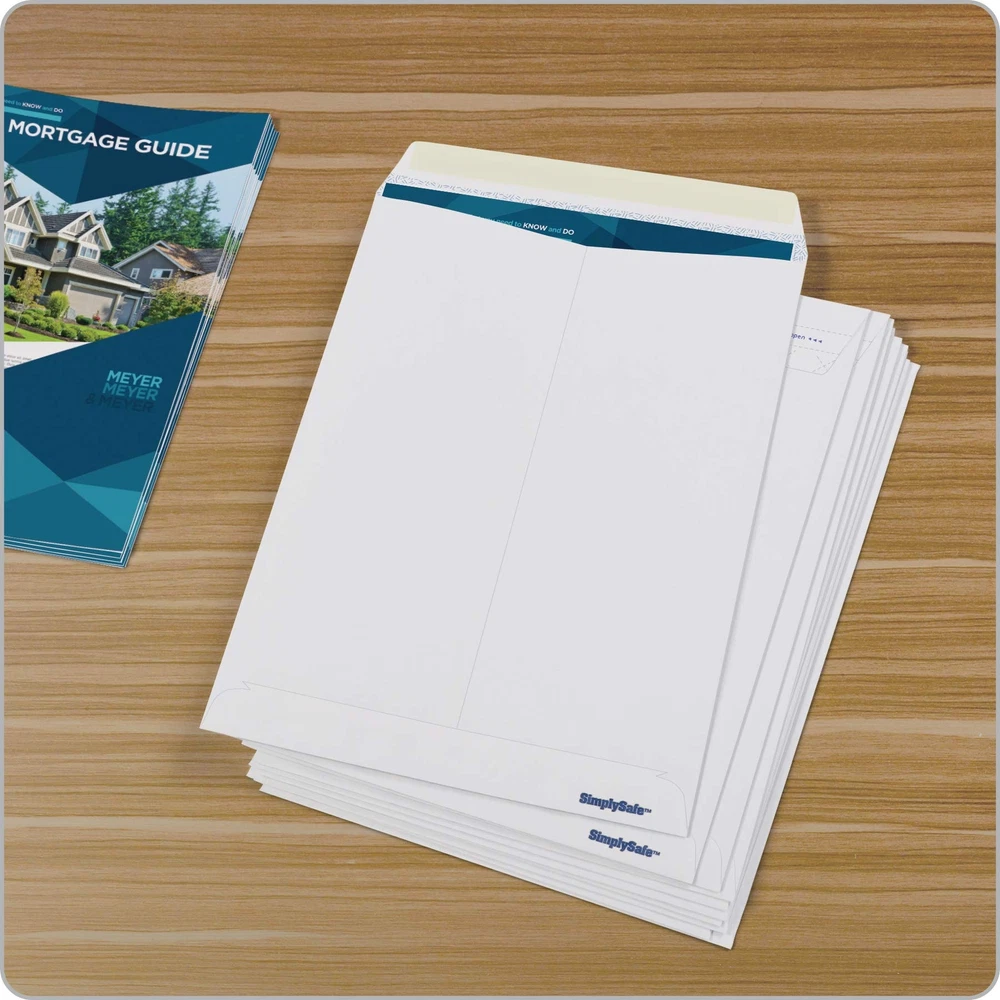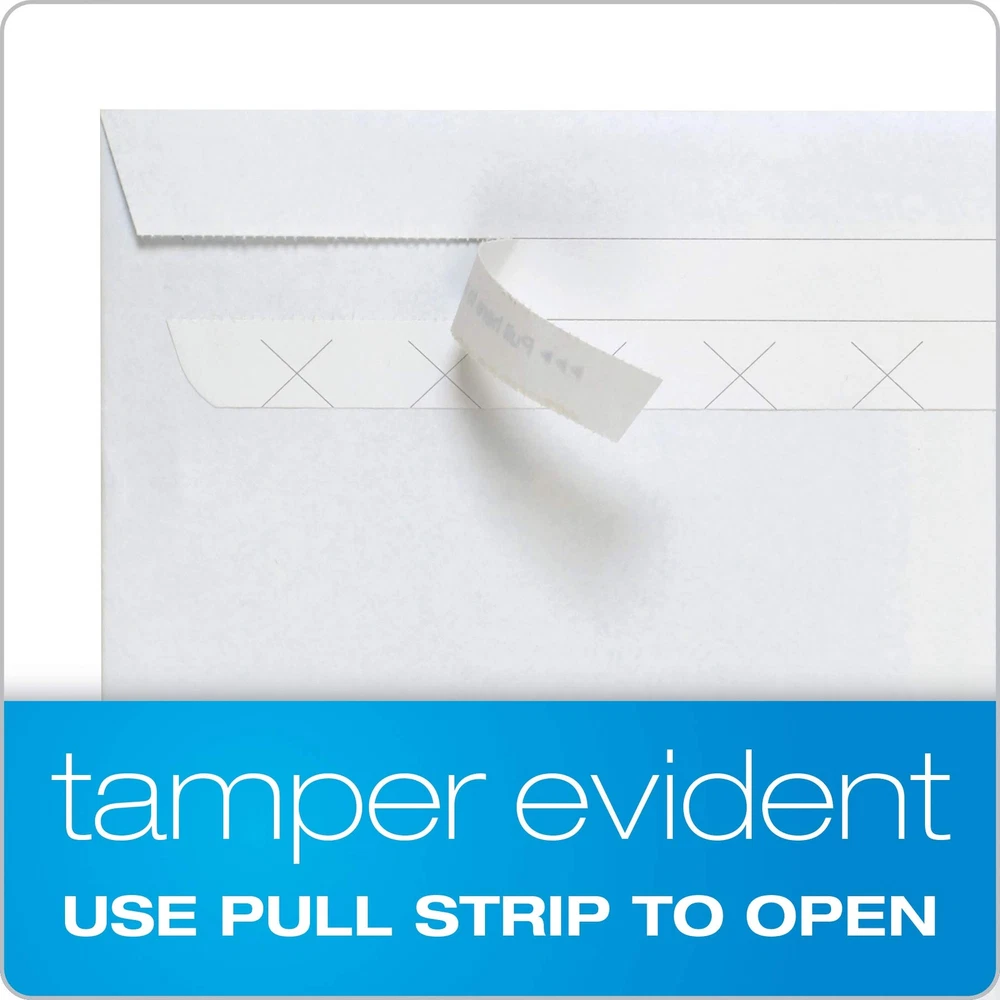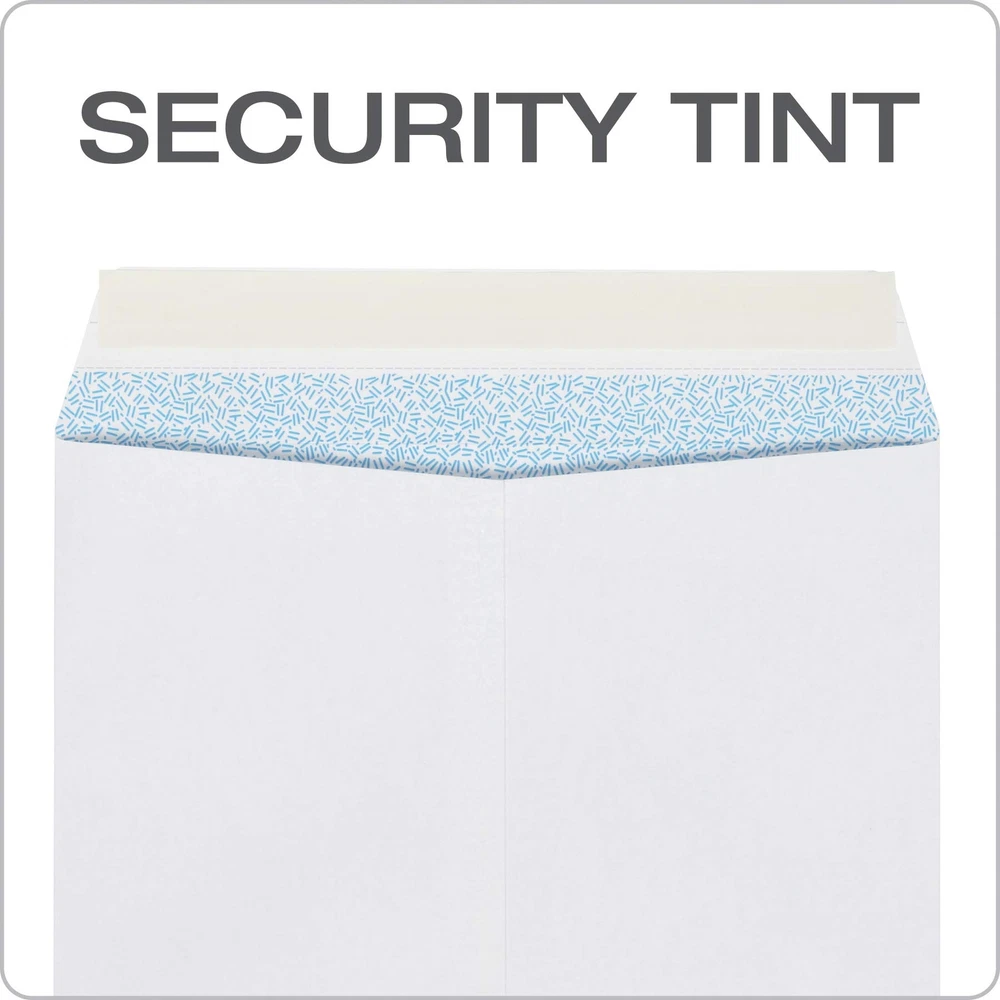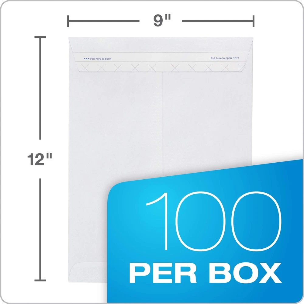 Columbian 9 x 12 SimplySafe Security Envelopes are ideal for mailing important documents or sending sensitive client information. Each security tinted envelope has a scrambled blue pattern printed on the interior that conceals the contents. The patented SimplySafe seal is constructed to show any signs of tampering. These mailing envelopes are still easy for the sender to close and the intended recipient to open. The Release & Seal strip peels right off so you can press to seal without any moisture. A pull strip makes opening the envelope straightforward and prevents you from tearing the documents inside. These self seal envelopes are inkjet printer compatible, though not recommended for a laser printer (use address labels instead). Stock up on 9" x 12" security envelopes for billing paperwork, tax documents, accounting records and more. Made from durable 28 lb paper. Overall envelope dimensions are 9 x 12 inches. White. Box of 100. Get a box of 100 Columbian 9 x 12 envelopes with SimplySafe tamper-evident pull strips and security tinted interiors for mailing sensitive oversized documents; easy peel off Release & Seal closure Columbian 9 x 12 envelopes have a patented SimplySafe seal that will show signs of tampering, safeguarding against unauthorized opening Security envelopes have a strong security tint pattern so you can't see what's inside; ideal for obscuring more sensitive information and protecting critical documents These self seal envelopes have a Release & Seal peel strip; peel off the paper strip and press down for a permanent seal; it's simple, clean, and sanitary with no moisture required Stock up on these catalog envelope 100 packs made from heavyweight 28 lb white wove paper
