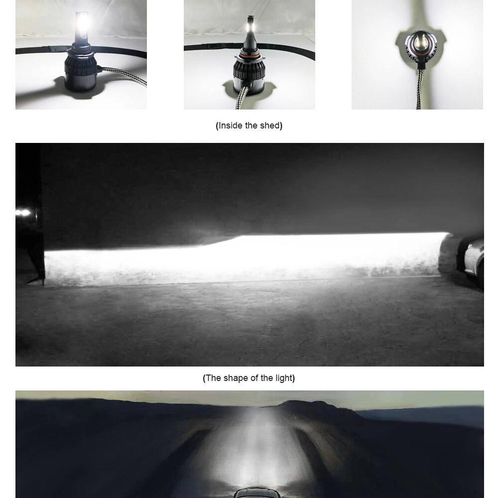 Product Description Product description: light Source Model:COB Chip,super bright Power: 36W Lumen:3800LM Operating voltage:DC9-32V Material: Aluminum PCB and PA66+30% GF Plastic Beam Angle:360° Color Temperature: 6000K Cool White Lifespan:over 30000h Working Temperature: -40-+80 Centigrade Waterproof rate: IP68,IP68 rated water and dust seal,over 30000hrs lifetime Product Performance: 1.Latest COB chip light source, 360 degree no blind zone. 2.Engineering beam pattern design throw more light on road evenly at appropriate angle without foggy light. 3.Xenon white light reflect road paint/signs better to show clearer road situation during night driving. 4.270 degree low beam angle with cut-off line,will not dazzle oncoming traffic. 5.All-in-one heat conduction+high speed mute fan system keep the light bulb in appropriate working temperature. 6.Built-in constant current CPU, instant full brightness without start-up relay. Two-way heat dissipation channel 1.All-in-one aluminum profile as heat conduction system, 360 degree heat radiating. 2.High speed mute fan (12000R/Min),high Air flow for faster cooling rate. Package Included: 6PC LED Light 9005 (High Beam) + 9006 (Low Beam) + 880 (fog light) Install Caution As a safety precaution, make sure that the car has had time to cool down properly before starting the installation process. Put the vehicle into park or make sure it is securely in gear. Make sure to have the ignition turned off and the keys removed. Be careful to avoid burns, especially when turning on or off the vehicles lighting. Be careful to avoid crushing or cutting the bulbs. Also make sure to not touch the bulbs with your fingers, as this will cause blotting. Fully examine the connection of the contact points, ports and the wires as faulty connections can cause lighting problems. Make certain that the end of the bulb does not come in contact with the interior light shield of the headlight when adjusting the bulb. Review Shipping Return Contact us FAQ Review If you like it, your POSITIVE FEEDBACK with 5 STAR RATING is greatly appreciated. If you encounter any problems about anything, please feel free to contact us and we will do our best to assist you to solve the issue. If you are not satisfied in anyway, please feel free to let us know and give us a second chance to correct it before you decide to leave any neutral/negative feedback Or open dispute. Shipping We will ship item locally for US buyers. Usually for US buyers it will take about 5-10 business days to reach. If you don't get it, please contact us firstly, we'll try our best to support you. ---------------------------------------------------------------------------- USPS Standard (ePacket) Shipping, with tracking number. Express (Expedited) Shipping, with tracking number. It depends on your location and local postal service, as well as the weather condition along the shipping. If you need a faster delivery time, you could choose Express (Expedited) Shipping. Return Any concerns, please feel free to let us know, we are happy to provide you assistance before/after buying. Anything caused your inconvenience we will do our best to correct. In case the item is wrong/defective, please do not throw it, just send us pictures (Small video) about the package & item, then we can confirm specific situations and provide you effective assistance. Contact us Your feedback is our encouragement. Please leave five stars positive feedback positive comment and Five-Stars . Contact us if you have any question, Give us a chance to serve you, negative feedback could not solve anything, communication Please! ( NO ) Three stars is LOW star, NO 1,2,3 stars PLEASE! ( YES ) Please give us Five-star! Have Question or Problem?? Step 1 : Contact seller Step 2 : Select the 1st topic: I have a question about using my item or I want to send the seller a message. NO others please! Select a topic: I have a question about using my item or I want to send the seller a message(0)( YES ) YES, THIS ONE!!! We will try our best to solve online if possible, if not, will give correct return address. I did not receive my item(2)( NO ) I need to return my item(1)( NO ) I receive an item that was not as described(1)( NO ) Request to cancel this order(1)( NO ) Step 3 : Describe your question clearly; we will give you the best solution We will help you to track the parcel all the way and give best solution for your order, please do not open case before give us a chance for communication! 1. We have always been trying to provide the best service and reliable product for every customer, However , accident may happen sometimes please contact us solve any issue before leaving a negative feedback. 2. We have a professional and attentive customer support team. Welcome to contact us any time and any issue will be solved by our great communications. We can be reached at ebay message most emails are answered within 24-48 hours. Our normal business hour is Monday to Friday 9AM to 5PM PST . FAQ FREQUENTLY ASKED QUESTIONS OF LED 1.How can I find the right LED bulbs for my vehicle? Search for the vehicle year, make, model and the installation position in our store. If you are not sure about that, please contact us via ebay message with your vehicle year, make and model. Let us know which LED bulb you're interested in, so we can check the fitment and get back to you as soon as possible. 2.Will this bulb fit my vehicle? We can match almost any vehicle to one of our bulb sizes. eBay only lets us include 3,000 vehicle fitments per listing, but if your vehicle does not show up on the compatibility table at the top of our listings, welcome you to contact us for free consulation before purchasing a product. 3.I bought the wrong items/ the items were not compatible with my vehicle. Please contact us via ebay message to get quick support. 4.Neither side lighting up? Both sides flicker, flash, or work inconsistantly. Check the headlight fuses, and then check the ballast plugs to insure corre