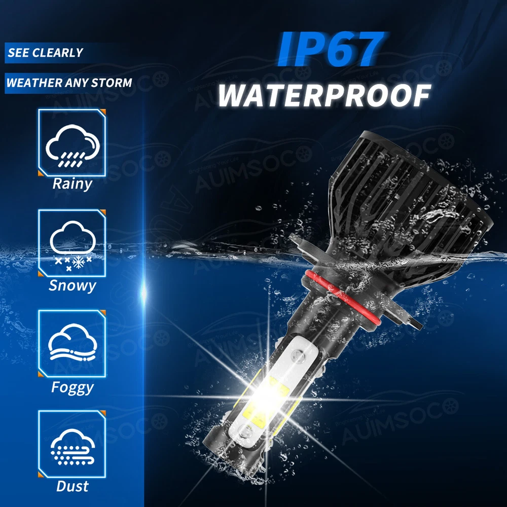 AUIMSOCO Authorized Store on eBay K9 Series Cold White LED Headlight Bulb Conversion Kit 1 x Pair 9005 Headlight High Beam 1 x Pair H11 Headlight Low Beam Specifications: Plug type: 9005 High Beam +H11 Low Beam Wattage: 40W/Per Pair Luminous Flux: 4000LM/Per Pair. Condition: 100% Brand New / Never Used Voltage: DC 9-32V ( Fit 12V,24V Vehicle ) IP Rate: IP68 LED type: latest COB LEDs Color Temperature: 6000K-6500K White Beam Angle: 360° Operating Temperature: -40 - +80°C Lifespan: 50000 working hours Application: Headlights To Fit: Headlights Kit Placement on Vehicle: Left,Right,Front Fog Light Specification: Bulb Size: H11 LED replacement bulbs are engineered for superior performance, exceptional looks, and increased safety. AUIMSOCO LED chip high power Usage: LED Fog Light Voltage: DC 12V-24V Power: 40W/per pair Lumen: 4000LM/per pair Color Temperature: 6500K - White LED Chips: AUIMSOCO customized LED chips Material: Heatsink aluminum shell Fanless: yes, no noise Lifespan: 50,000 hours Waterproof Rate: IP67 Warranty: 1 years warranty Color Temperature: 6500K Clear White Lifespan: 50,000 working hours, stable quality, long service life Aluminum heat sink design,built-in automotive circuit to prevent electronic interference. The model is the same as factory light, no need to change car wire rute,just Plug and Play, NO modification required Energy saving, environmental protection, Stable performance, through strict test, Use safer driving in the car. Warm Tips: This model comes in multiple models, If you are not sure about the bulb size, please send us your vehicles' make/model/year via ebay message to confirm with us before purchasing. Any questions please feel free to contact us, we will help you solve it. Package Included: 2 x 9005 LED High Beam Bulbs 2 x H11 LED Low Beam Bulbs 2 x H11 LED Fog Light Bulbs Randomly send new and old packaging boxes