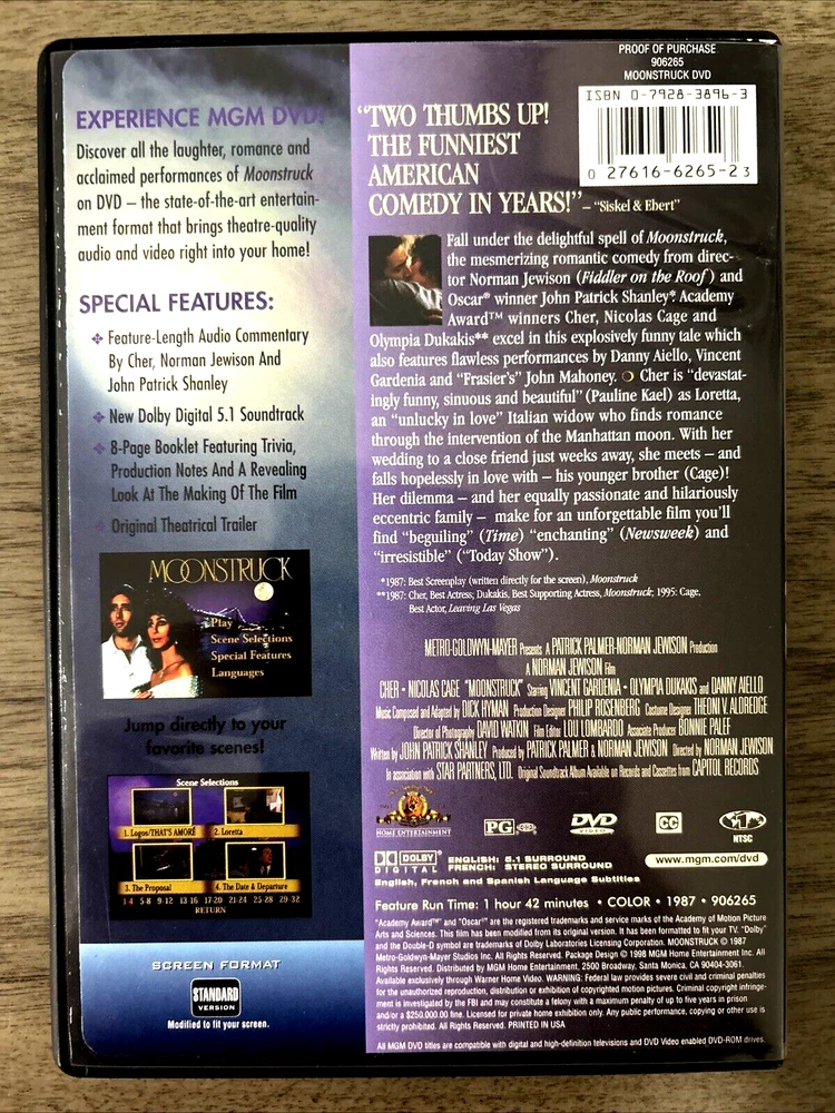 Comedy-Moonstruck: Cher & Nicolas Cage 1987 DVD