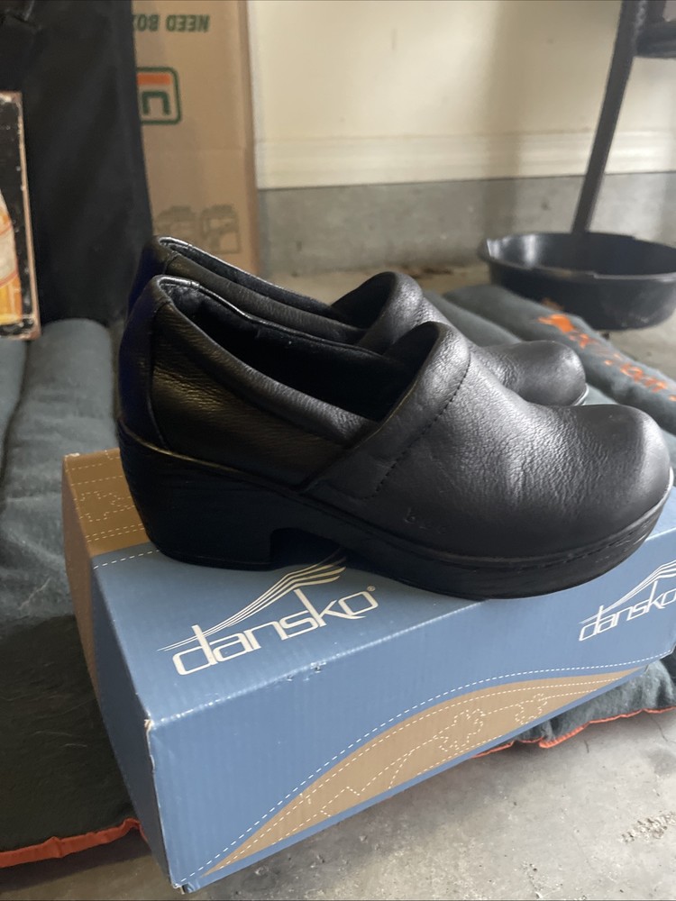 Black Suede Leather Faux Fur Lined Crocs Cobbler Mules Clog for Women Size 9