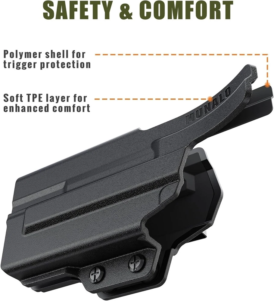 Comfortable IWB Holster for Glock 19/23/32 with Flashlight - Glossy Black ‹ › ‹ › ‹ › ‹ › ‹ › ‹ › ‹ › ‹ › ‹ › Comfortable IWB Holster for Glock 19/23/32 with Flashlight - Glossy Black Product Features: Precision Fit: Engineered specifically for Glock 19/19X Gen 3-5, Glock 44/45, and Glock 23/32 Gen 3-4. Not compatible with Glock G23 Gen 5. For Multiple Lights: Accommodates a variety of compact weapon lights (up to 1.20 inches wide and 1.33 inches high). Works perfectly with Streamlight TLR-7, OLIGHT PL-Mini 2 Valkyrie, INFORCE WILD1, Surefire XC1 and XC2. Retention remains secure even without a light. Ultra Comfort: Features a soft TPE layer over a durable polymer shell, providing exceptional comfort for all-day wear. Say goodbye to the discomfort of hard plastic. Optics Ready: Integrated optics cut accommodates most sight systems, including suppressor sights, for full versatility. Enhanced Concealment: Includes two optional camming bars to reduce printing, leveraging the firearm’s grip against your body for superior concealment. Custom Fit: Sturdy metal clip designed for 1.5-inch belts and an additional clip for 1.75-inch belts, ensuring stability. Adjustable ride height and cant up to ±20 degrees for a personalized fit. Why Choose This Holster? Experience the perfect blend of safety, comfort, and versatility with our Comfortable IWB Holster for Glock models. Designed for the modern gun owner, this holster ensures a snug fit for your Glock while accommodating various weapon lights. Its unique design features a soft shell for all-day wear, making it your ideal companion for daily concealed carry. With enhanced concealment features, including a custom adjustable fit, you can carry confidently and comfortably. Whether you're in the field or on the go, this holster meets every demand you place on your everyday carry gear. Your safety and comfort shouldn't be compromised. Choose our IWB Holster today – where safety meets comfort! Shipping Free & Fast Shipping - We offer free shipping to most of the USA with a normal delivery time of 3-7 days. However, due to the current situation, additional delivery time (up to 3 weeks) may be required for some items. Alternative Carriers - We may use alternative carriers (e.g. USPS, FedEx, UPS, etc.) to ensure your package arrives safely and on time. Due to the use of multiple carriers, we are unable to provide a tracking number automatically. Handling Time - Orders are processed and shipped within 1-2 business days of receiving cleared payment. Shipping Restrictions - Shipping to Alaska, Hawaii, Puerto Rico, Guam, and other US territories may incur shipping charges or delivery restrictions. Please contact us before ordering, or your order can be refunded/cancelled. State Restrictions - There may be restrictions based on your state of purchase. For example, certain items may not be shipped to California due to state regulations. Contact for Tracking Updates - If you require tracking updates or have any concerns about the delivery of your order, please feel free to contact us, and we will be happy to assist you. Return 30-Day Hassle-Free Returns - We want you to be completely satisfied with your purchase. If you are not, you can return the item within 30 days of receiving it for a full refund or exchange. Easy Return Process - To start a return, simply contact us and we will provide you with a prepaid return shipping label and detailed instructions. Restocking Fee - There are no restocking fees for returns. However, the buyer is responsible for return shipping costs if the return is not due to a seller's error. Refund Processing Time - Refunds will be processed within 5 business days of receiving the returned item in its original condition. Payment We accept all major credit cards, PayPal, and Apple Pay for your convenience. Your payment information is secure and encrypted to ensure a safe and seamless transaction. Please complete your payment within 3 days of purchase to avoid any delays in shipping. Feedback Your feedback is extremely important to us. We strive to provide the best products and customer service possible. If you are satisfied with your purchase, please take a moment to leave us a positive review. If you have any concerns or issues with your order, please contact us before leaving negative feedback. We are committed to resolving any problems and ensuring your satisfaction. Contact Us If you have any questions or concerns, please feel free to reach out to our customer support team. You can contact us through the eBay messaging system. We are available Monday to Friday, 9:00 am to 5:00 pm EST, and we will do our best to respond to your inquiry within 24 hours. Buy it now and enjoy a pleasant shopping experience! UPC: Not Set Model: Not Set Item Height: Not Set Item Length: Not Set Item Weight: 0.5 Item Width: Not Set Unit Quantity: 1 For Gun Make: GLOCK Material: Polymer,Polymer and Soft TPE Hybrid,Soft TPE Carry Location: Appendix,Inside Waistband (IWB) For Gun Type: Pistol Gauge/Caliber: Not Set Carry Position: 1 o'Clock Attachment Type: Clip Features: Adjustable Cant,Lightweight,With Clip Cant: Neutral Set Includes: 1 holster Brand: Unbranded Type: Concealment Holster Number of Magazines: 1 Level: Level 1 Sport/Activity: Shooting MPN: Not Set Handedness: Right Color: Glossy Black Country/Region of Manufacture: Not Set Manufacturer Warranty: Not Set Unit Type: Unit