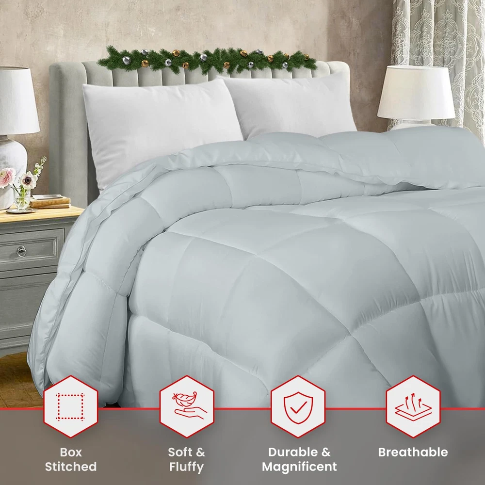 Comforter Duvet Insert: Queen comforter duvet insert measures 88 inches x 88 inches Box Style Stitching: Crisp looking comforter with siliconized fiber filling features piped edges with an elegant style box stitching that prevent the fill from shifting Siliconized Fiberfill: Extremely soft material with siliconized fiberfill alternative filling provides a comfy and cozy feel Corner Tabs: The four corner tabs make it extremely easy to put on any duvet cover and secures the comforter in place Machine Washable: Machine wash in the gentle cycle with cold water, line dry or tumble dry on heat