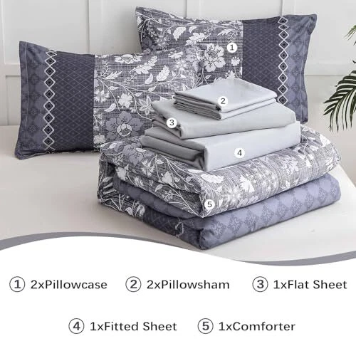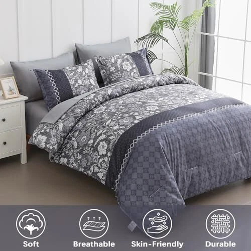 Return Policy Fast Delivery Trusted seller Blue Comforter Set Queen, 7 Pieces Bed in a Bag Floral Geometric Patchwork Soft Microfiber Comforter Bedding Set with Comforter,Flat Sheet, Fitted Sheet, Pillow Shams,Pillowcases Product Description 【7 PIECES QUEEN BED IN A BAG】: Blue floral geometric patchwork comforter bed in a bag queen with 1 Comforter 90" x 90" + 2 Pillowcases 20" x 26"+ 1 Fitted Sheet 60"x 80"+14"+ 1 Flat Sheet 90"x 102"+ 2 Pillow Shams 20"x 30". 【BOHEMIAN FLORAL GEOMETRIC PATCHWORK PATTERN】: Blue boho floral geometric patchwork design, can be matched with any style of room, bring noble and elegant visual experience, the best gift for family and friends ! 【SOFT MICROFIBER BEDDING SET】: Blue comforter queen size made of high quality and lightweight microfiber, fluffy and soft to the touch, light and breathable, bringing you the ultimate tactile enjoyment of your skin and providing you with a healthier quality of sleep all year round. 【EXQUISITE WORKMANSHIP】: Queen bed in a bag comforter size set is simple elegant bedding, several invisible stitching prevent the filling from shifting or leaking out,the firm stitching ensures it will last for years to come. 【EASY CARE】: High-quality fabric is not easy to tear, machine wash in the gentle cycle with cold water, do not bleach, keep the original color after washing. Shipping Returns Payment Shipping Shipping is FREE to all addresses other than APO/PO boxes in the lower 48 states. All our stock ships from US-based warehouses. Shipped via USPS or UPS (depending on location and package weight) Unless stated otherwise, all orders will ship within 24-72 hours of your payment being processed. Check our feedback to see the great reviews of FAST shipping we offer. Returns Seller does not accept returns Payment We currently accept payment via eBay managed payments only. Once payment is cleared, we will dispatch your shipment within 1-3 business days. Please refer to the "Shipping" tab for more information regarding shipping speed to your destination.