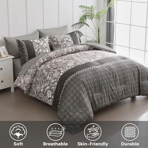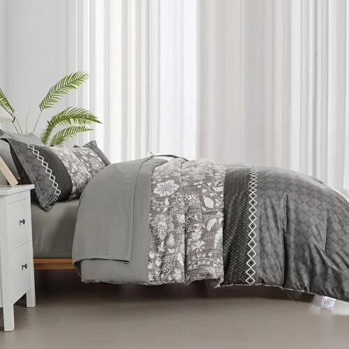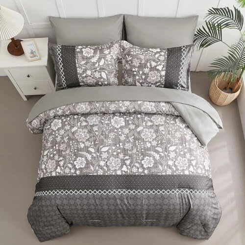 Return Policy Fast Delivery Trusted seller Grey Comforter Set Queen, 7 Pieces Bed in a Bag Floral Geometric Patchwork Soft Microfiber Comforter Bedding Set withComforter, Flat Sheet, Fitted Sheet, Pillow Shams,Pillowcases Product Description 【7 PIECES QUEEN BED IN A BAG】: Grey floral geometric patchwork comforter bed in a bag queen with 1 Comforter 90" x 90" + 2 Pillowcases 20" x 26"+ 1 Fitted Sheet 60"x 80"+14"+ 1 Flat Sheet 90"x 102"+ 2 Pillow Shams 20"x 30". 【BOHEMIAN FLORAL GEOMETRIC PATCHWORK PATTERN】: Gray boho floral geometric patchwork design, can be matched with any style of room, bring noble and elegant visual experience, the best gift for family and friends ! 【SOFT MICROFIBER BEDDING SET】: Grey comforter queen size made of high quality and lightweight microfiber, fluffy and soft to the touch, light and breathable, bringing you the ultimate tactile enjoyment of your skin and providing you with a healthier quality of sleep all year round. 【EXQUISITE WORKMANSHIP】: Queen bed in a bag comforter size set is simple elegant bedding, several invisible stitching prevent the filling from shifting or leaking out,the firm stitching ensures it will last for years to come. 【EASY CARE】: High-quality fabric is not easy to tear, machine wash in the gentle cycle with cold water, do not bleach, keep the original color after washing. Shipping Returns Payment Shipping Shipping is FREE to all addresses other than APO/PO boxes in the lower 48 states. All our stock ships from US-based warehouses. Shipped via USPS or UPS (depending on location and package weight) Unless stated otherwise, all orders will ship within 24-72 hours of your payment being processed. Check our feedback to see the great reviews of FAST shipping we offer. Returns Seller does not accept returns Payment We currently accept payment via eBay managed payments only. Once payment is cleared, we will dispatch your shipment within 1-3 business days. Please refer to the "Shipping" tab for more information regarding shipping speed to your destination.