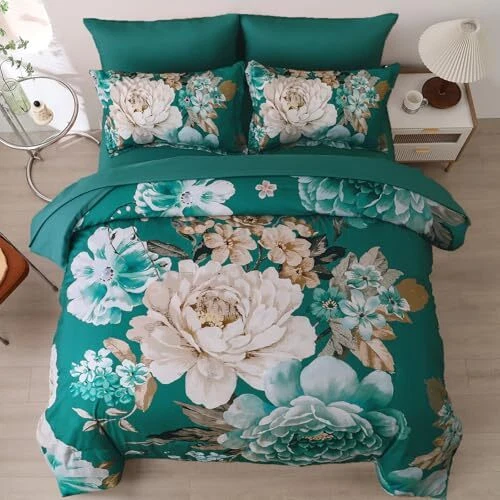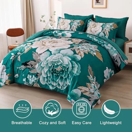 Return Policy Fast Delivery Trusted seller Teal Comforter Set Queen 7 Pieces Bed in a Bag Elegant Floral Bedding Sets Teal Blue Flower Comforter Complete Soft Lightwieght Bed Set with Flat Sheet, Fitted Sheets, Pillowcases & Shams Product Description 【7 Pieces Comforter Queen Size】This teal floral comforter set include 7 pieces. 1 comforter 90" x 90"+1 Fitted Sheet 60"x80"x12"+1 Flat Sheet 90"x102"+ 2 pillowcases 20" x 30"+2 Pillow Shams 20"x 26". 【Elegant Teal Floral Pattern】This flower comforter feature a large beautiful floral print, in elegant teal, gives the pattern a romantic style. This comforter use high-definition printing technology, which is not easy to fade, simple and personalized design gives your bedroom a stylish decoration. 【Ultra Soft Microfiber Material】This bedding comforter sets uses super soft microfiber material, filling the comforter with whole piece of microfiber. Frim stitching with Exquisite Hemming, the microfiber Solid comforter is highly durable, high tensile strength, wrinkle-resistant, fade-resistant and machine washable.Moderate thickness, suitable for all seasons. 【Easy to Care】This floral comforter is made of polyester microfiber, which is easy care & machine washable, never fade, wrinkle free, resistant to dust, easy to remove pets' fur.Our Comforter can be used directly without duvet cover, more convenient to use. 【Warm Tips】As the teal floral bed in a bag comforter is packed in vacuum bags, it is recommended that you dry the quilt in the sun and gently tap the quilt to make it fluffy again. If you have any questions, please contact us. Shipping Returns Payment Shipping Shipping is FREE to all addresses other than APO/PO boxes in the lower 48 states. All our stock ships from US-based warehouses. Shipped via USPS or UPS (depending on location and package weight) Unless stated otherwise, all orders will ship within 24-72 hours of your payment being processed. Check our feedback to see the great reviews of FAST shipping we offer. Returns Seller does not accept returns Payment We currently accept payment via eBay managed payments only. Once payment is cleared, we will dispatch your shipment within 1-3 business days. Please refer to the "Shipping" tab for more information regarding shipping speed to your destination.