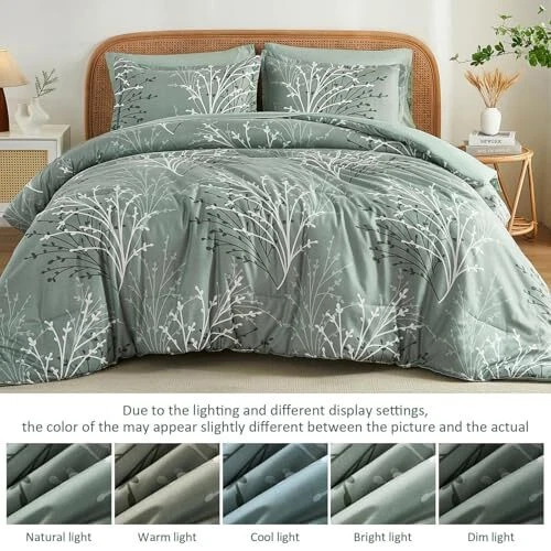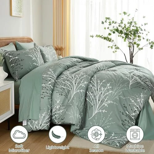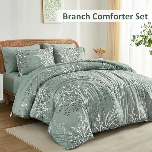 gtin13: Does Not Apply EAN: Does Not Apply Color: Sage Green Item Height: 6.38 Item Width: 11.73 Included Components: 1 Comforter, 1 Fitted Sheet, 1 Flat Sheet, 2 Pillow shams, 2 Pill Seasons: All Number of Pieces: 7 Item Weight: 7.61 pounds Package Dimensions: 13.62 x 11.73 x 6.38 inches Material: Microfiber Type: Does Not Apply Pattern: Branches MPN: Does Not Apply Brand: Does Not Apply Item Length: 13.62 Theme: Nature, Plant Size: Queen Style: Botanical Product Care Instructions: Machine Wash Date First Available: September 14, 2024 UPC: Does Not Apply Fabric Type: Microfiber Polyester Manufacturer: Does Not Apply