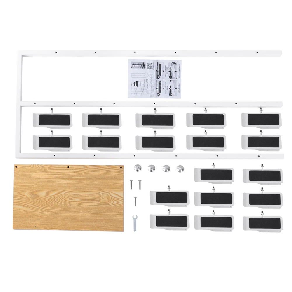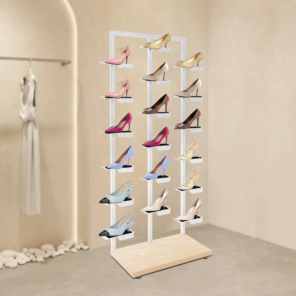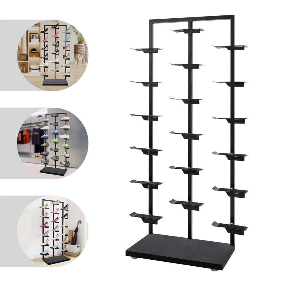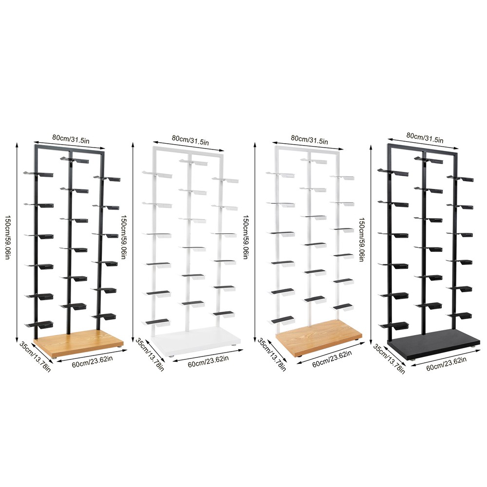 Commercial Clothing Store Shoe Rack Free Standing Retail Shoe Display Shelf Specification Material: Oak/Ashtree, Iron Technics: Spraying, High-temperature Baking Paint Color: Black/White/Black, Wood/White, Wood Style: Modern Number of Compartments: 18 Mount Type: Floorstanding Assembly Required: Yes Display Side: Single Sided Overall Load Capacity: 11kg/24.25lbs Square Tube Size: 25*25mm/0.98*0.98in Base Size: 60*35cm/23.62*13.78in Product Size (L*H): 80*150cm/31.5*59.06in Package Size: 150*65*8cm/59.06*25.59*3.15in Gross Weight: 10kg/22.05lbs Net Weight: 9.5kg/20.94lbs Package Included 1* Shoe Rack 1* Chinese Installation Instruction All Accessories for Use Description This exquisite three-column single-sided shoe rack features a modern minimalist design that harmoniously blends in with various styles. It is not only a practical storage solution, but also a stylish display rack to show your taste. It is suitable for displaying in shoe store boutiques, specialty stores, apparel company showrooms, and other stores to make your shoes more prominent and beautiful and increase your sales, or you can place it at home to display your collection of shoes. Key Features Robust and Durable: The high-quality iron frame, oak or ashtree base, spraying, and high-temperature baking varnish processes make it sturdy, wear-resistant , not easy to damage, and still maintains its excellent performance after a long time of use. Space Optimization: It can display or store 9 pairs of shoes at the same time, which meets most of the display or storage needs. The three-column design maximizes the use of every inch of space, especially suitable for limited space placement in stores or homes. Outstanding Display Effect: The single-sided open design allows customers or users to clearly and intuitively see all the shoes on display, which makes it easy to select and maintain a tidy shoe rack at the same time. Easy to Access: Each shoe holder is well-designed, making it easy to access and place the shoes, which greatly enhances the experience of using it. Stable Construction: The 0.98*0.98-inch iron square tubes and thick base and strong screw fixation ensure that the shoe rack can hold 24.25 lbs as a whole, so you can use it with peace of mind. Ventilated and Breathable: An open design helps air circulation between shoes and reduces odor buildup. Simple Assembly: Simple structure and complete accessories make it easy for you to assemble it by yourself without professional tools. Freedom of Choice: We offer a total of two bases of ashtree and oak and two colors of black and white, you can choose freely within these four products according to your own preferences and decorative style. Aesthetically Pleasing: The versatile black/white color scheme and minimalist shape not only display the shoes effectively but also serve as part of the interior decoration to enhance the aesthetics of the environment. Customer Service: We aim to provide quality products and services. If you have any problems, please feel free to contact us. We will reply and solve the problem for you as soon as possible. Details 4 Non-slip Feet: You can adjust the 4 non-slip feet when the ground is uneven to maintain a more stable support and placement effect. Thoughtful Shoe Holders: The sponge pads can better protect your shoes, while the holders have a curved design to better support your shoes and prevent them from accidentally falling off. Application It can hold up to 9 pairs of shoes, suitable for displaying any shoes, such as sneakers, basketball shoes, flats flip-flop sandals (all excluded), etc. It is suitable for shoe stores, shopping malls, shoe exhibition halls, bedrooms, entrances, corridors, dressing rooms, and other places. Notes Please check the style and size before purchasing. Please follow the diagram for installation. Please allow the slight color difference caused by the shooting light and 1-3cm error due to manual measurement and make sure you do not mind before ordering. Payment Delivery details Terms of sales About us Contact us Payment We accept ebay payment 。 Fees such as import duties, taxes are not included in the item price or shipping costs. These charges are the buyer's responsibility. Delivery details Shipping: 2-9 working days to: USA Terms of sales We maintain high standards of excellence and strive for hundred percent customer satisfaction. Feedback is very important to us. We hope that you contact us immediately before you give neutral or negative feedback, so that we can address your concerns. It is impossible to address issues if we do not know about them! About us Your satis faction is our ultimate goal. We work hard to earn your trust and future business. Our certified technicians have tested each item before shipping. The unit comes with 1 year limited warranty on all manufacturing defects. a) If you receive a defective item, you may return it or ask for a discount. Please contact us within 14 days after you receive the package. b) What you returned must be intact and in its original packaging as re? u. Customer is responsible for shipping costs of the returned item. c) We will cover the cost of shipping back t with the shipping rate indicated in the registration page. We will send you a new unit or refund the full payment you paid. Thank you. Contact us Business Hour Business Hour: Monday To Friday: 8:30 AM to 5:00 PM (Beijing China time) Due to time zones, our reply to your questions may not be immediately. But within above working time, we will reply your email within 24 hours. If it's non-workdays, please kindly be patient and wait till Monday. Please contact us with ebay message. Please feel free to contact us if you have any questions. Monday To Friday: 8:30 AM to 5:00 PM (Beijing China time) Due to time zones, our reply to your questions may not be immediately. But within above working time, we will reply your email within 24 hours. If it's non-workdays, please kindly be patient and wait till Monday. Plea