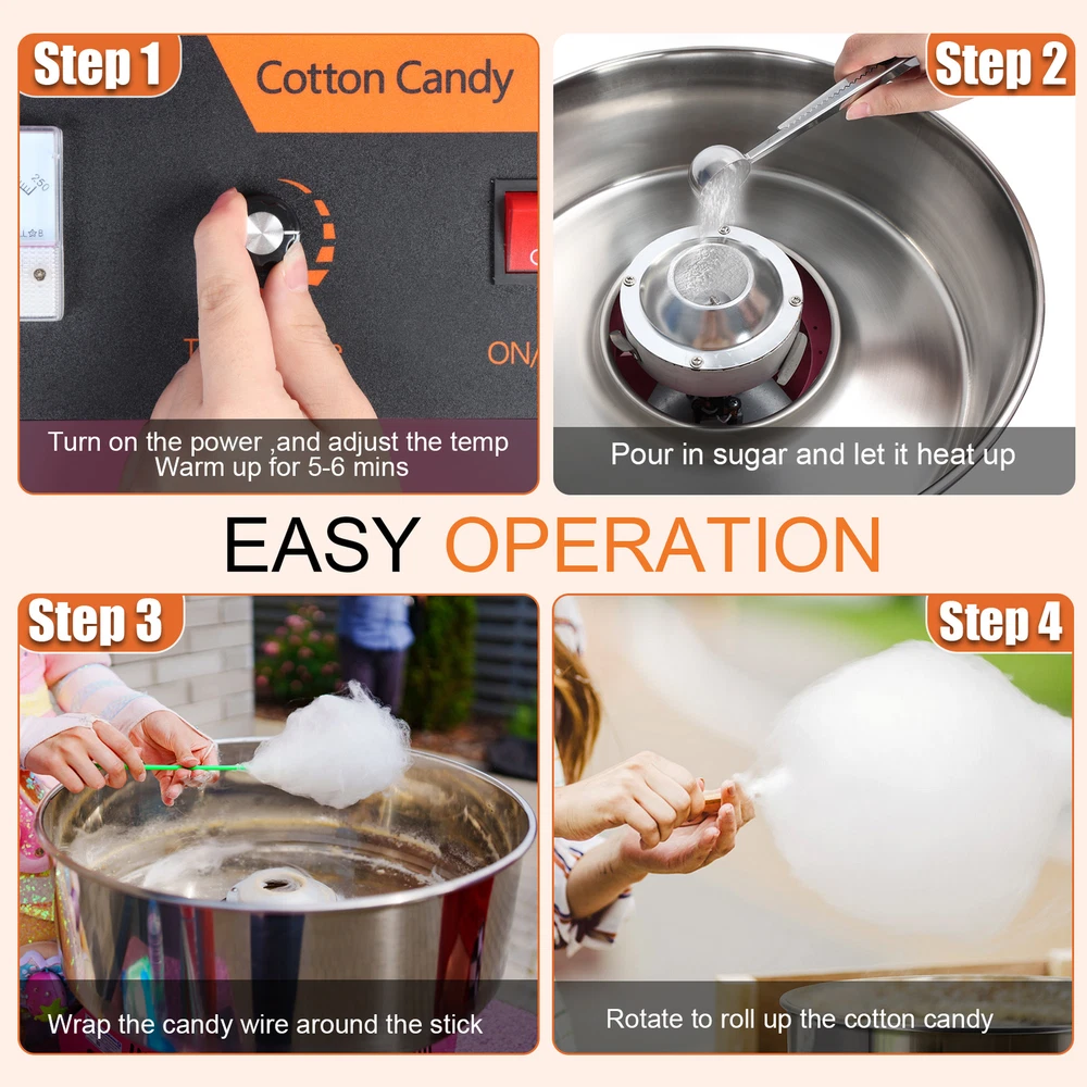 Other | | | | | | Hot Sale, You May Need Multipurpose Wire Stripper High Density Crimping Tool with Wrench Function $ 12.90 Solar Powered Welding Helmet Auto Darkening LCD Clear Welding Helmet $ 15.55 Computer Game Esports Massage Chair with Adjustable Waist Support Game Chair $ 148.90 1200W Electric Demolition Hammer Industrial Grade Concrete Demolition Hammer $ 92.94 Refrigerant Meter w/3 Color Hoses 2 Couplers Air Conditioning Manifold Gauge Set $ 73.49 Commercial Cotton Candy Machine 1000W Electric Cotton Candy Machine, 110V US > > > > > > < < < < < < < < < < < < < < < < < < < < < < < > > > > > > > > > > > > > > > > > > > > > > > Description: Performance and Efficient: This cotton candy machine has 1000W heating power for fast and quiet, it only takes 5-6 minutes to preheat after turning on the switch to produce cotton candy quickly in the stainless steel bowl, and the head can run continuously without clogging and stopping so that you can have a good experience of making cotton candy. Humanized Design: Comes with a sugar spoon to facilitate you to pour sugar for making, the stainless steel candy outlet ensures even heating, and the ventilation holes on both sides are easy to dissipate the heat to prevent overheating and keep the cotton candy maker running stably. Premium Material: The sugar bowl is made of stainless steel material, which is durable, corrosion-resistant, and easy to clean. The shell is made of high-quality iron material, which is corrosion-resistant and easy to clean. The motor material is pure copper, with high speed and high working efficiency. User Friendly Design: It is easy to get cotton candy, just turn on the power, adjust the temperature to 90 degree, preheat for 5-6 minutes, pour the sugar into the rotary head, and use the stick to collect the cotton candy from the rotary head, the temperature can be adjusted, suitable for you to go to make different flavors of candy. Multipurpose: With this cotton candy machine for kids, you can make traditional cotton candies, milk candies, fruit chunks, or any hard candies you like to make delicious marshmallows, which can be placed directly on the tabletop. It is suitable for commercial use, birthday parties, carnivals, and festivals. Item Name: Cotton Candy Machine Material: Metal Rated Power: 1000W Rated Voltage: AC110-240V Temperature Range: 50-300 degrees Celsius Socket Type: US Standard, 110V Features: Stainless Steel Bowl, Pure Copper Motor, Pure Copper Motor Size Details: L: 35cm/13.78", W: 30cm/11.81", H: 32.5cm/12.8" (Approx.) Notes: Due to the light and screen setting difference, the item's color may be slightly different from the pictures. Please allow slight dimension difference due to different manual measurement. Package Includes: 1 x Cotton Candy Machine 1 x English User Manual 1 x Spoon (Random Style) New Arrival, You May Like Multipurpose Wire Stripper High Density Crimping Tool with Wrench Function $ 12.90 Solar Powered Welding Helmet Auto Darkening LCD Clear Welding Helmet $ 15.55 Gaming Chair with Height Adjustable Video Game Chair High Back Lumbar Support $ 152.05 9L Buffet Dish Catering Food Warmer Chafing and Buffet Warmers Set $ 123.63 Long Hose Brass Nozzle Welding Torch Kit withToolbox Welding Cutting Torch Tool $ 135.79 Payment 1. We acceptPayPal,Credit card,Debit card,Apple Pay,Google Pay ect as payment. 2. Please be sure your shipping address is correct before make a payment. Shipping 1. We ship to your eBay or Paypal address. Please make sure your eBay and Paypal address is correct before you pay. 2. Items will be shipped within 1-7 business days when we received payment. 3. Delivery time depends on destination and other factors. 4. International buyers please note: a. Import duties, taxes and charges are not included in the item price or shipping charges. These charges are buyer's responsibility. We will try our best to reduce the risk of the custom duties. b. Please check with your country's customs office to determine what these additional costs will be prior to buying. Return 30 DAY RETURN POLICY Customer Satisfaction is our main goal, all items are quality checked prior to being listed and sent out. Please contact us prior to leaving any Negative Feedback and allow us to make things right! If you not satisfied with it please include the original packaging and return form & tracking number otherwise the return may take longer to process the refund. Once we have received the item and inspected it we will issue the refund or resend within 1-7 business days. Contact Us Please contact us in time if any enquriy under any circumstances. We greatly appreciate your positive feedback and we'll do the same to you. We care about our valued customers, and will always try our best to help you, if you have any problems. Working time: GMT+8 / 9:00-18:30 in normal we will reply you in one working day.