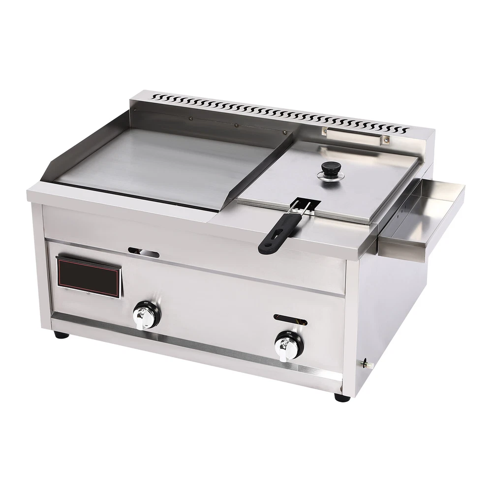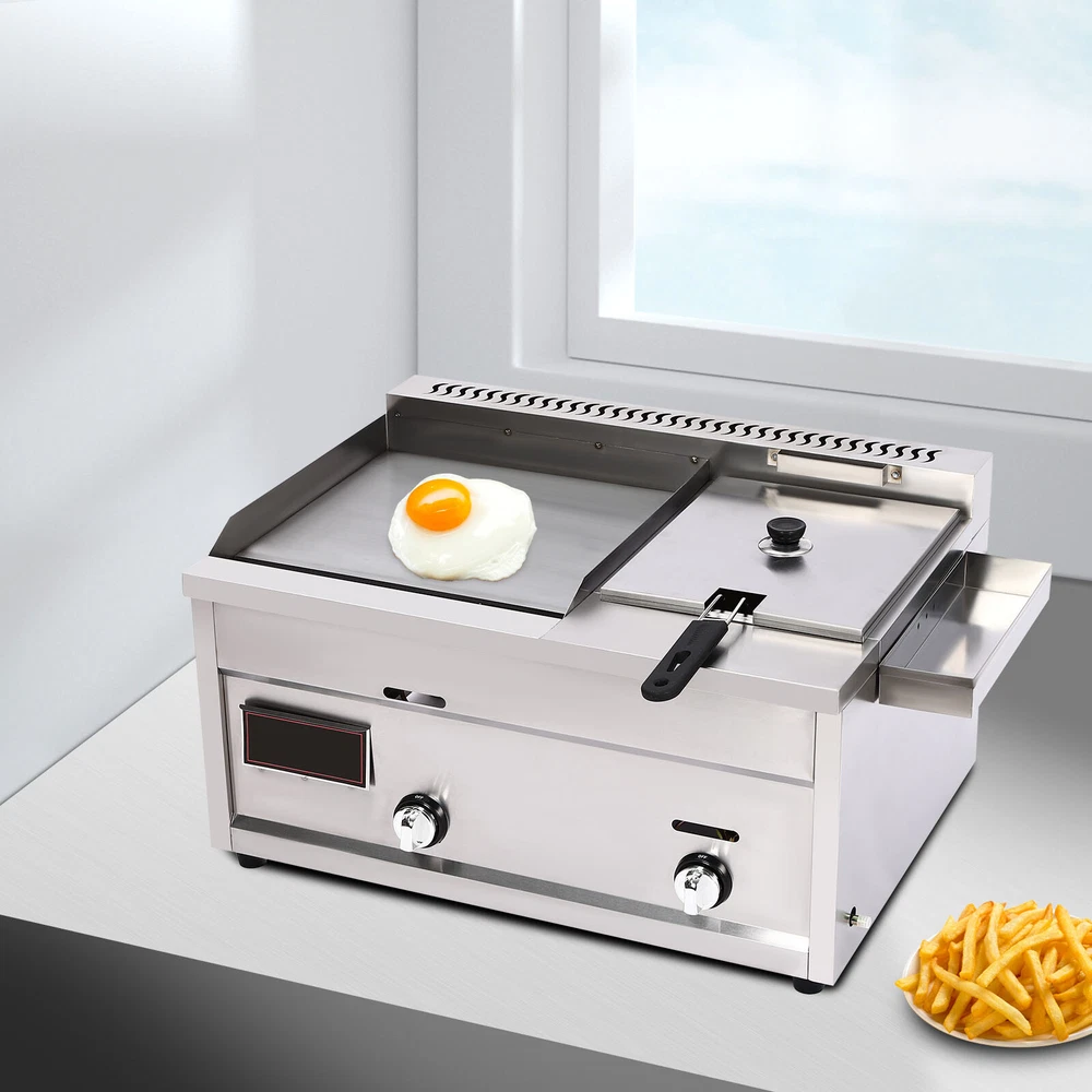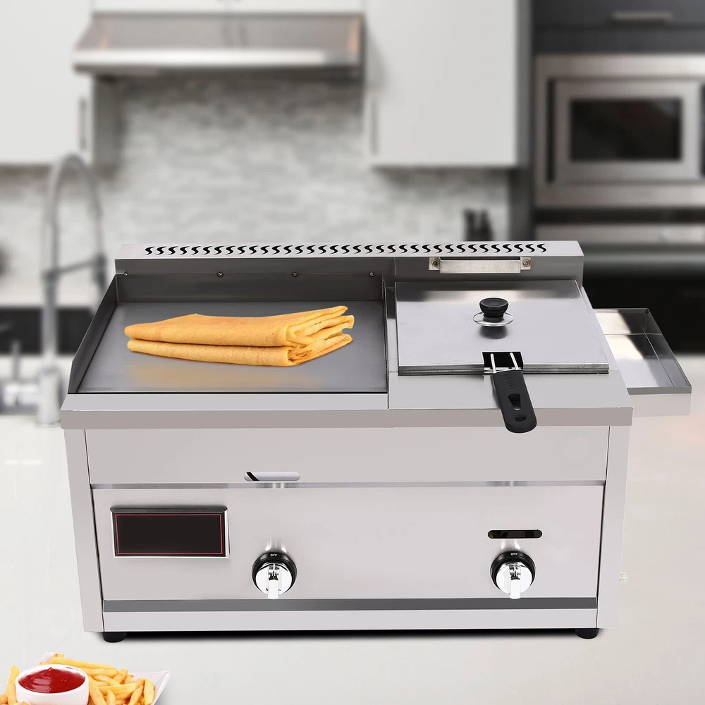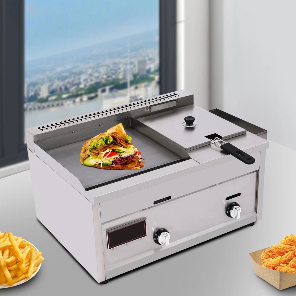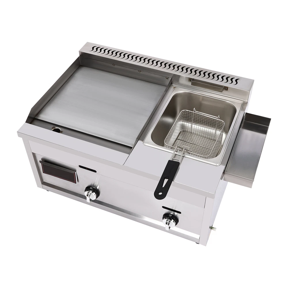 Commercial Flat Top Gas Propane Griddle Grill BBQ Hot Plate Grill + Deep Fryer